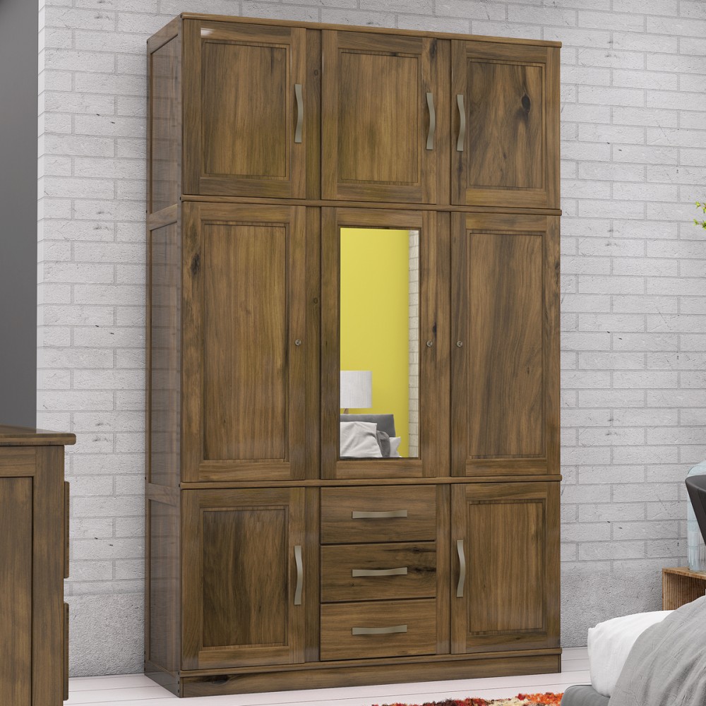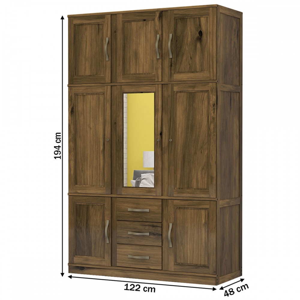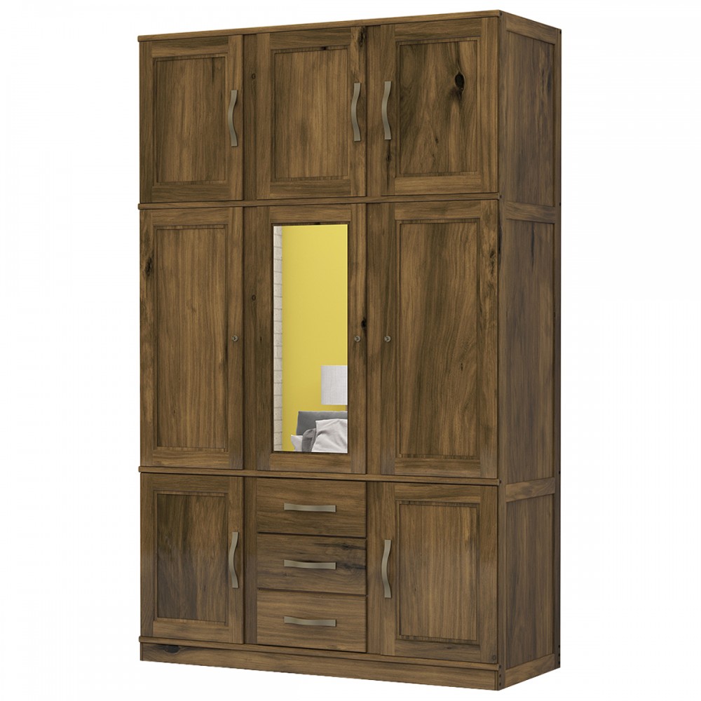 O(a) Guarda-Roupa Solteiro Paris 8 Portas 3 com Espelho Gavetas Madeira Maciça Castanho 367 - Lanes é produzido em Pinus na escala de brilho Alto Brilho, e possui um grau de dificuldade de montagem: Médio.