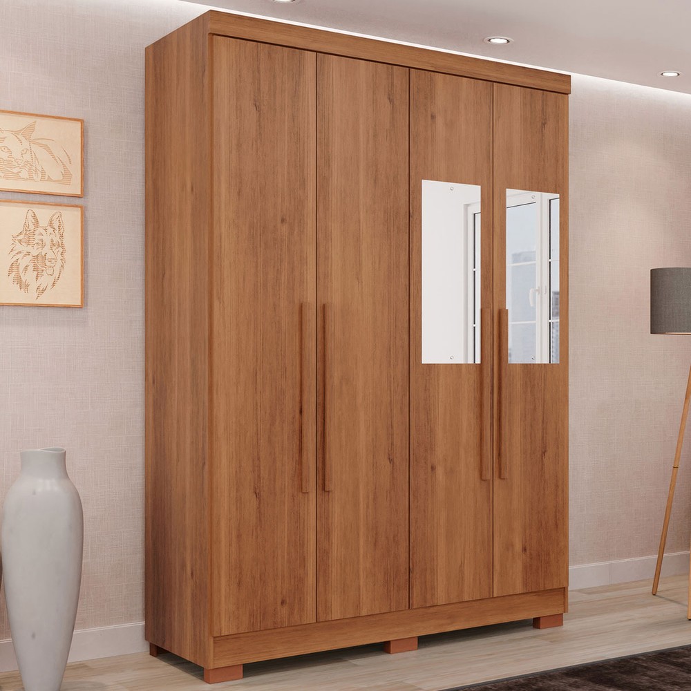 O(a) Guarda-Roupa Solteiro Pinheiro 4 Portas 2 Gavetas com Espelho Cinamomo - Pnr Móveis é produzido em MDP na escala de brilho Brilho, Fosco e Semi-Brilho, e possui um grau de dificuldade de montagem: Médio.