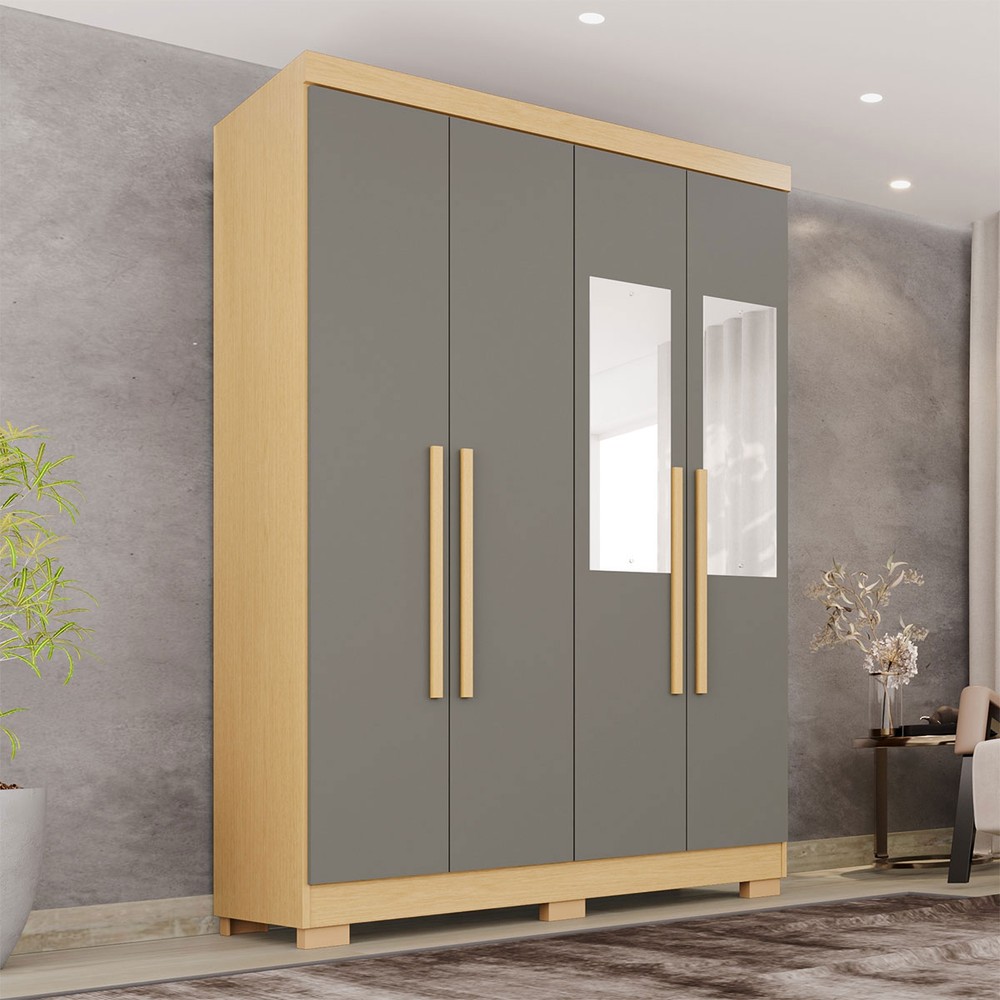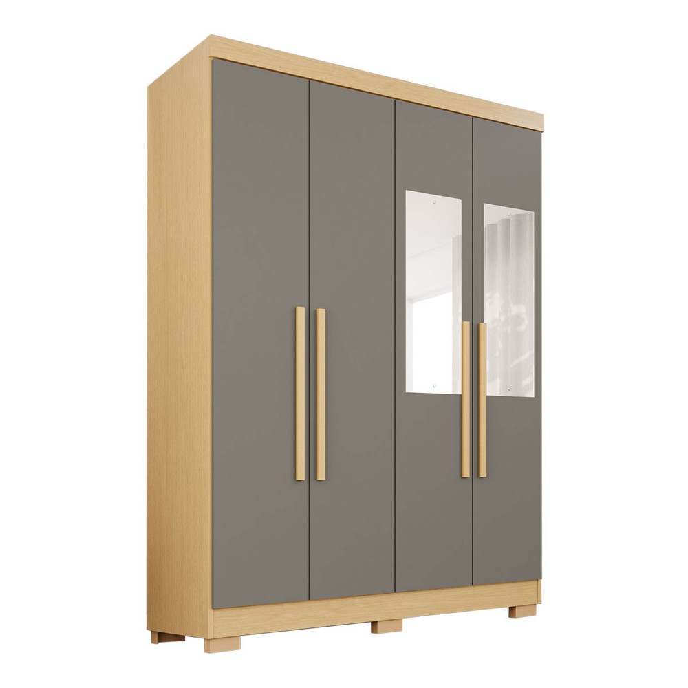 O(a) Guarda-Roupa Solteiro Pinheiro 4 Portas 2 Gavetas com Pés e Espelho Jequitibá/Granizo - Pnr Móveis é produzido em MDP na escala de brilho Brilho, Fosco e Semi-Brilho, e possui um grau de dificuldade de montagem: Médio.