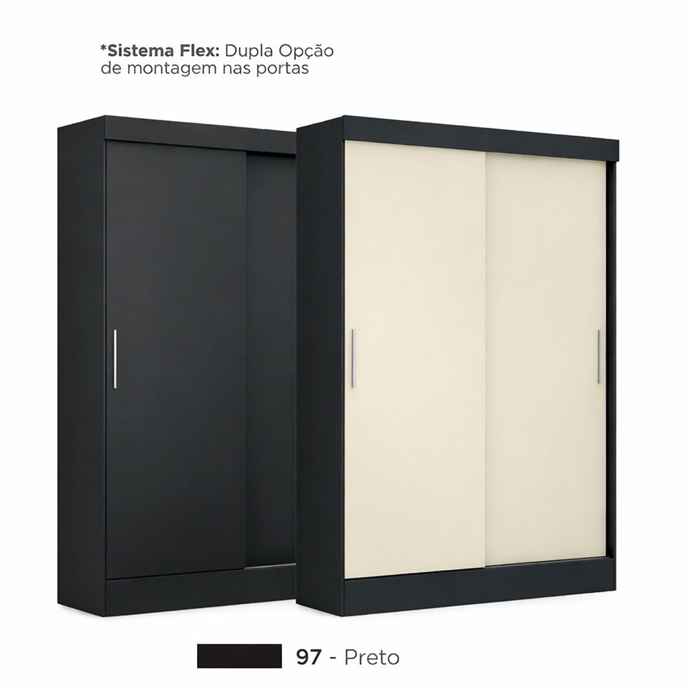 O(a) Guarda-Roupa Solteiro Porto Rico 2 Portas 2 Gavetas Flex Preto - Pnr Móveis é produzido em MDP na escala de brilho Fosco, e possui um grau de dificuldade de montagem: Médio.