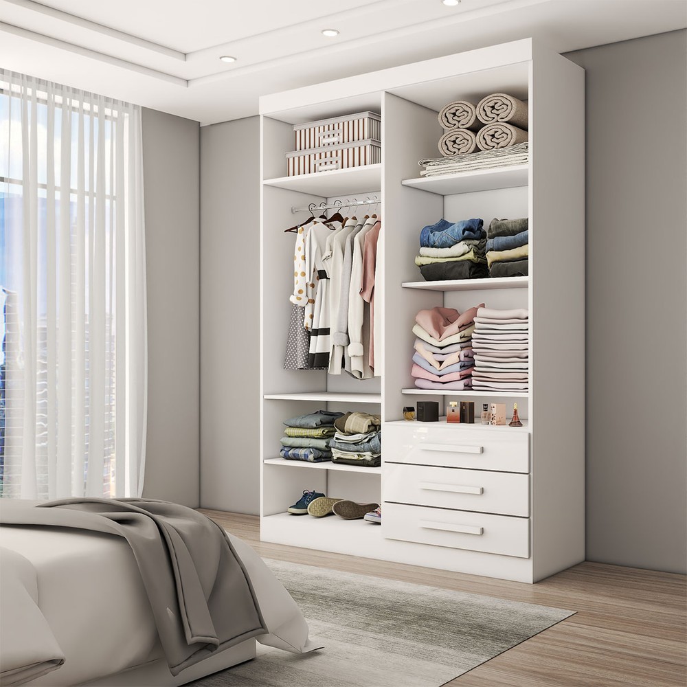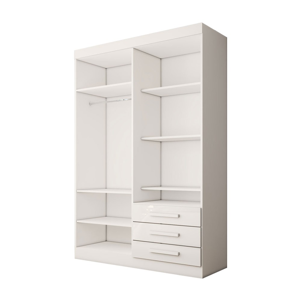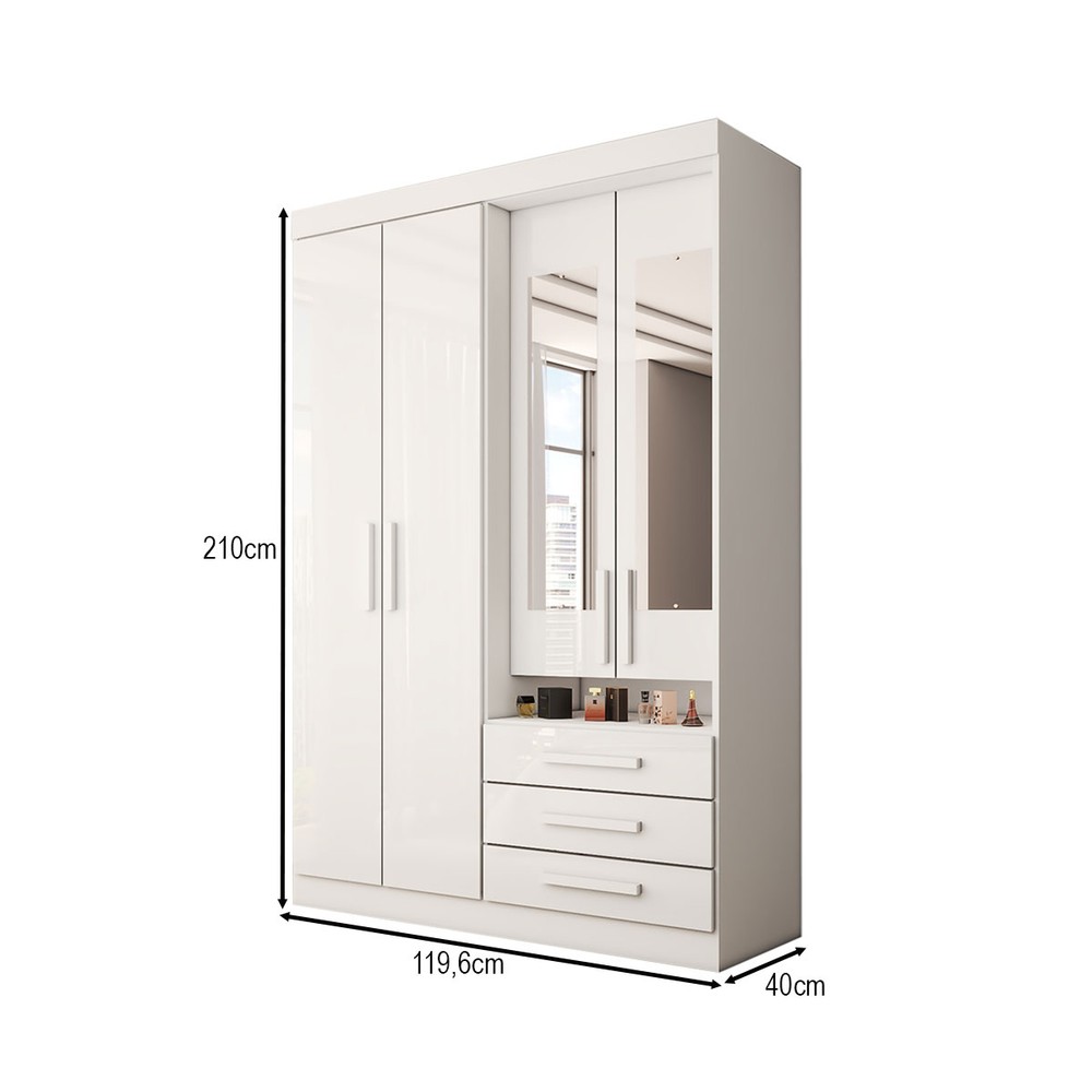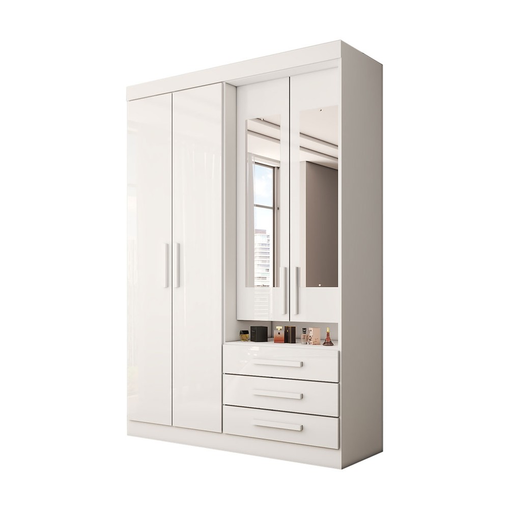O(a) Guarda-Roupa Solteiro Real 4 Portas 3 Gavetas com Espelho 100% Mdf Branco - Panorama Móveis é produzido em 100% MDF na escala de brilho Brilhante e Semi-Brilho, e possui um grau de dificuldade de montagem: Difícil.