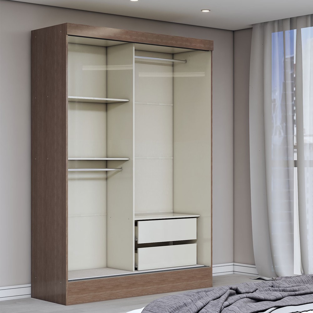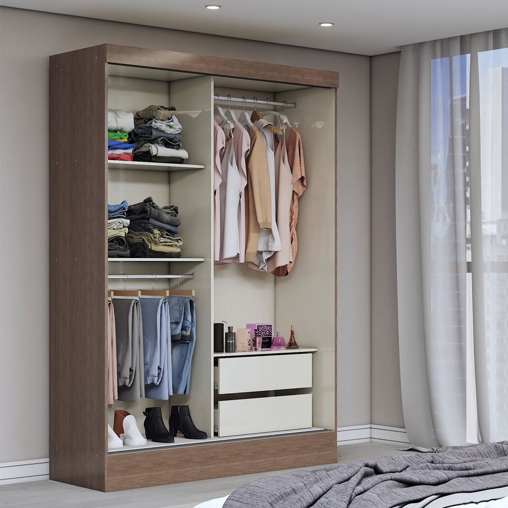 O(a) Guarda-Roupa Solteiro Saturno 2 Portas 2 Gavetas Jequitiba - Panorama Móveis é produzido em MDF, MDP e HDF na escala de brilho Brilho, e possui um grau de dificuldade de montagem: Médio.