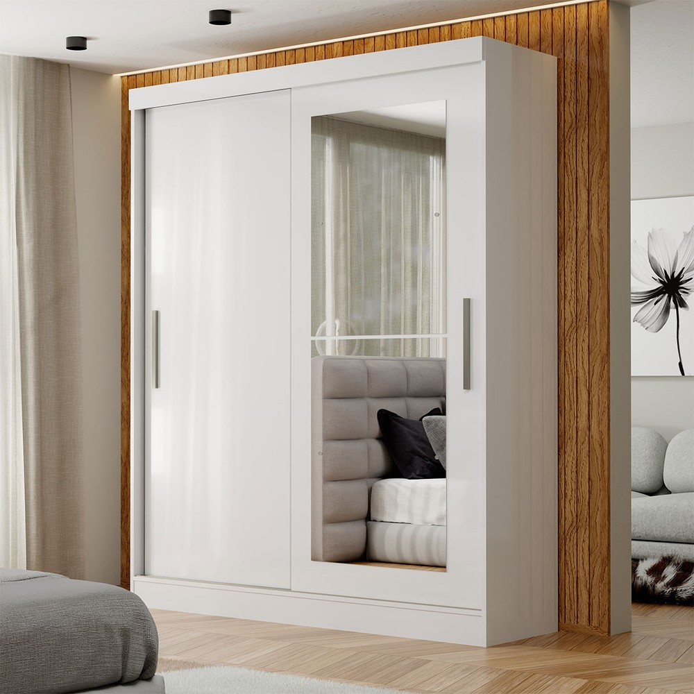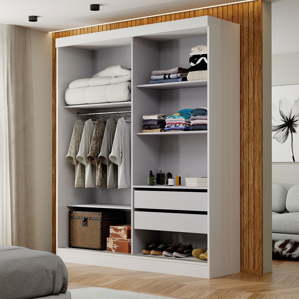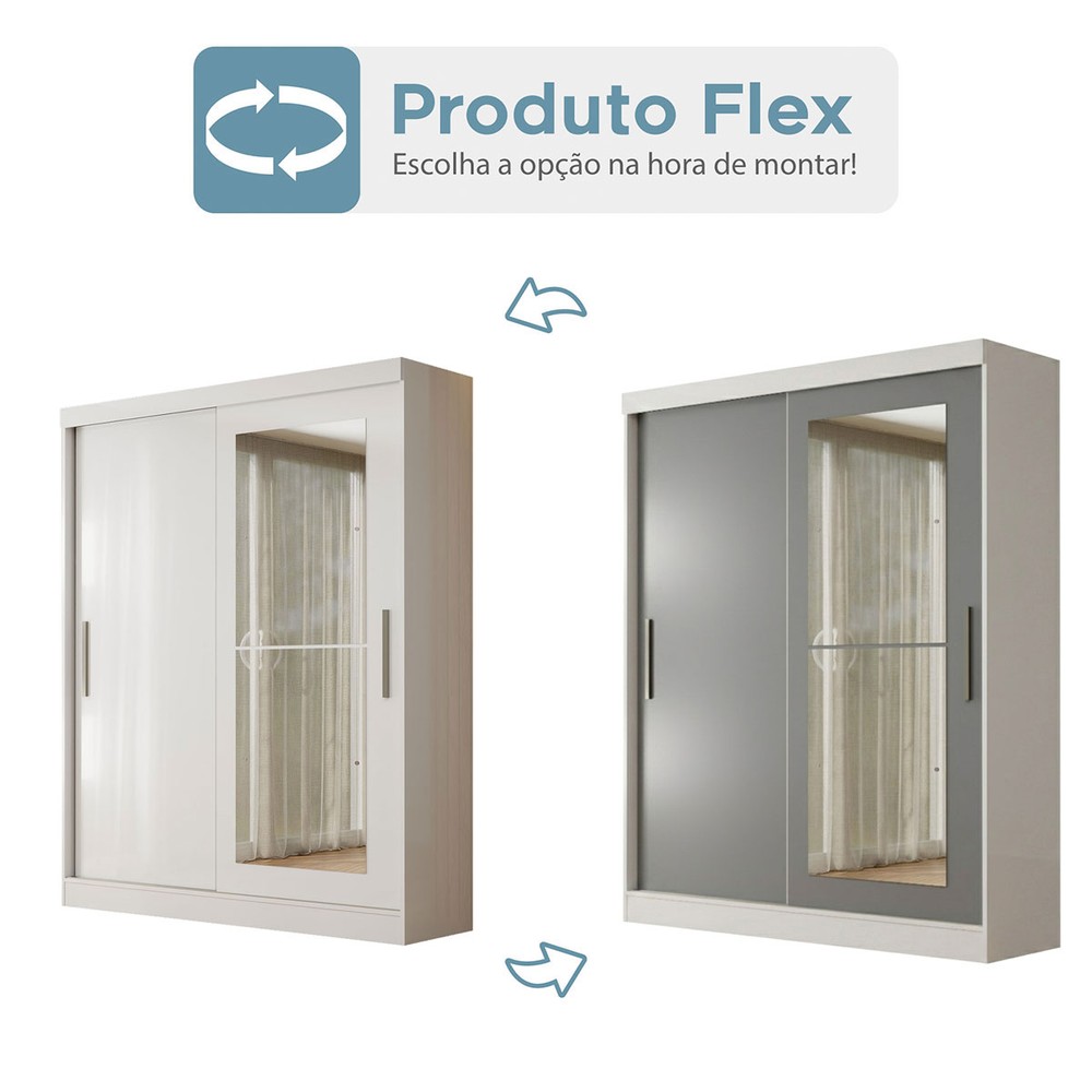 O(a) Guarda-Roupa Solteiro Sedona 2 Portas 2 Gavetas com Espelho Flex Branco - Panorama Móveis é produzido em MDP na escala de brilho Fosco, e possui um grau de dificuldade de montagem: Médio.