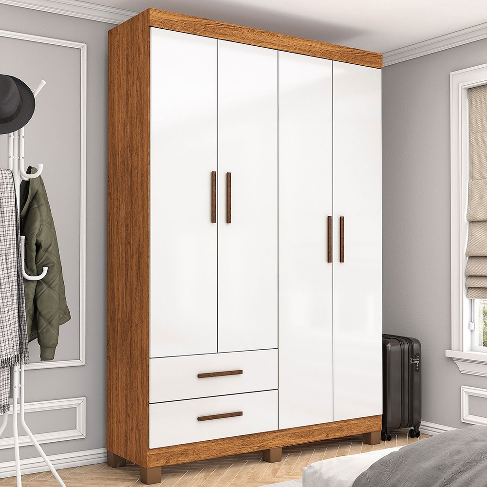 O(a) Guarda-Roupa Solteiro Solo 4 Portas 2 Gavetas com Pés Cinamomo/Branco - Pnr Móveis é produzido em MDP na escala de brilho Fosco e Semi-Brilho, e possui um grau de dificuldade de montagem: Médio.
