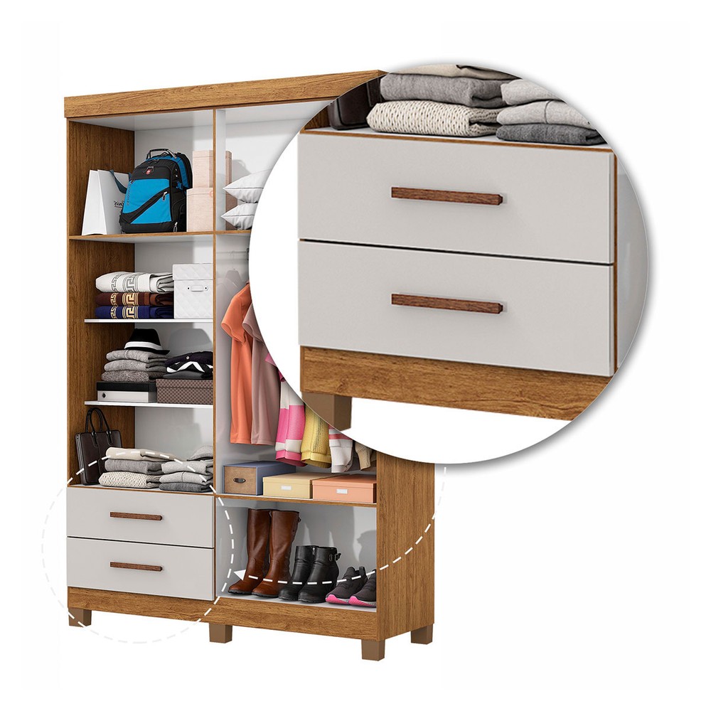 O(a) Guarda-Roupa Solteiro Genova 4 Portas 2 Gavetas 22112 Branco - Carioca Móveis é produzido em MDP na escala de brilho Fosco e Semi-Brilho, e possui um grau de dificuldade de montagem: Médio.