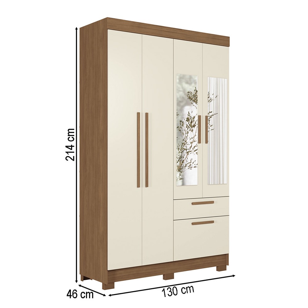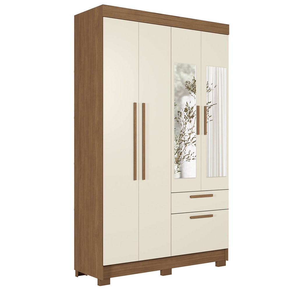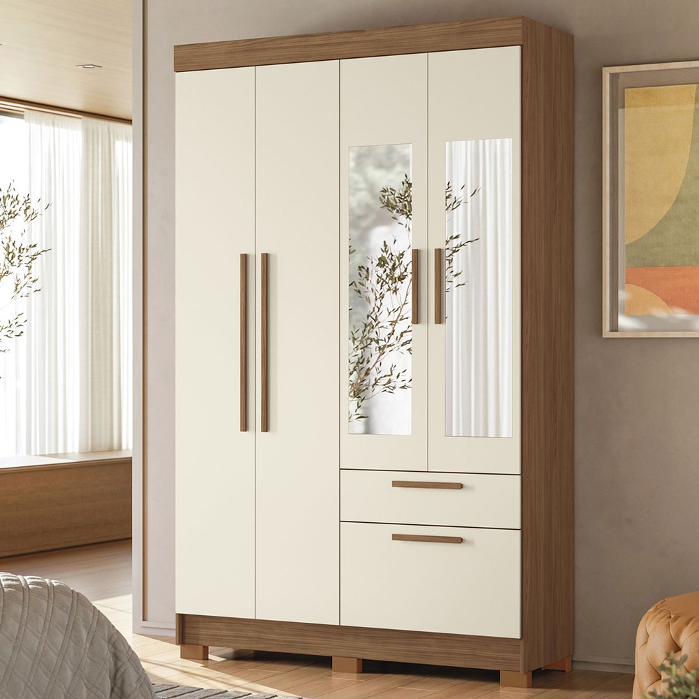 Guarda-Roupa Solteiro Sonora 4 Portas 2 Gavetas Jatoba/Areia com Espelho - Pnr Móveis