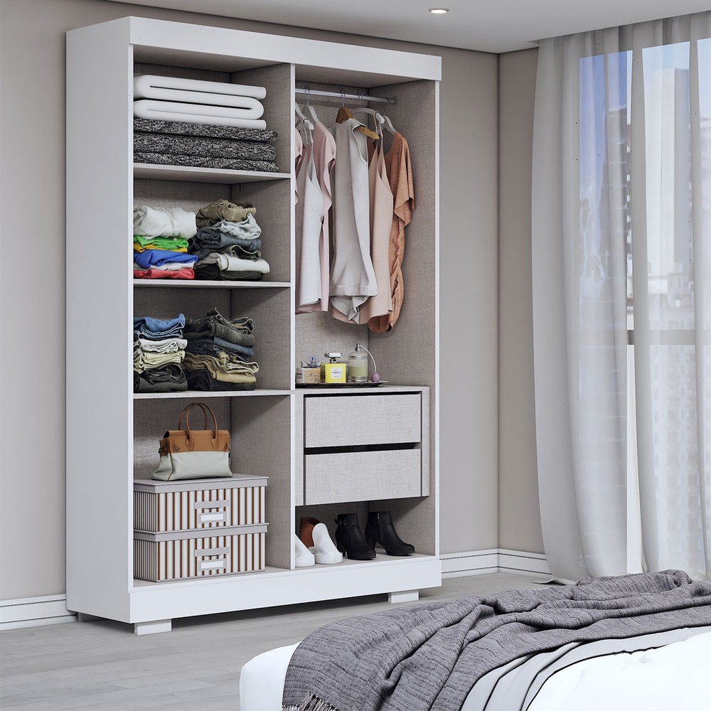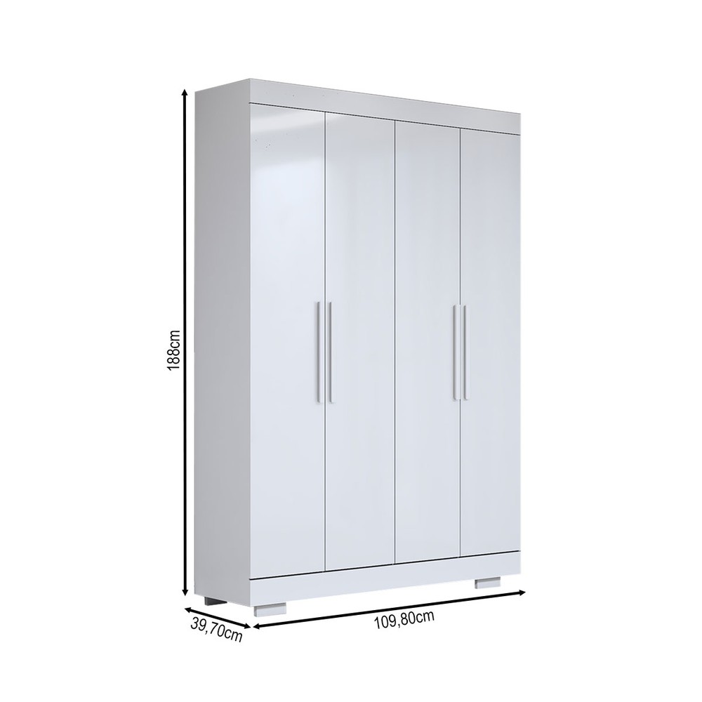 O(a) Guarda-Roupa Solteiro Splendore 4 Portas 2 Gavetas 100% Mdf com Pé Branco - Panorama Móveis é produzido em 100% MDF na escala de brilho Brilhante e Semi-Brilho, e possui um grau de dificuldade de montagem: Difícil.