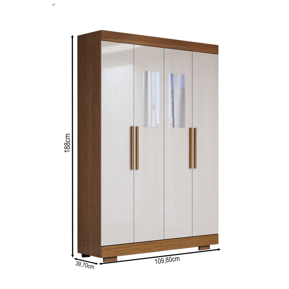 O(a) Guarda-Roupa Solteiro Splendore 4 Portas 2 Gavetas com Espelho 100% Mdf com Pé Cinamomo/Off White - Panorama Móveis é produzido em 100% MDF na escala de brilho Brilhante e Semi-Brilho, e possui um grau de dificuldade de montagem: Difícil.