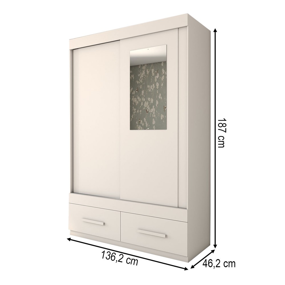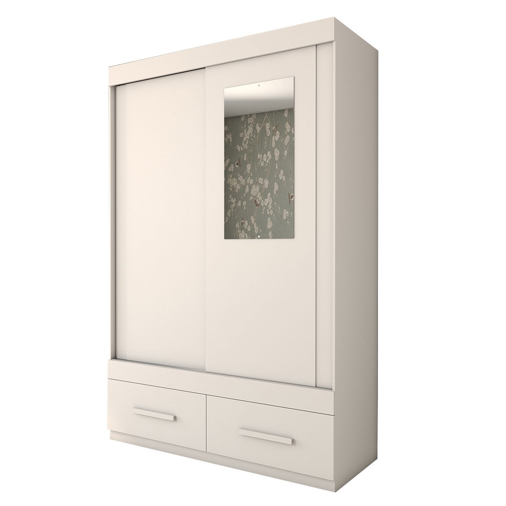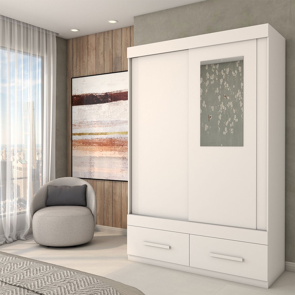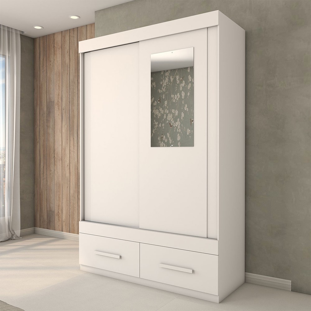Guarda-Roupa Solteiro Trevor 2 Portas 2 Gavetas com Espelho Branco - Panorama Móveis