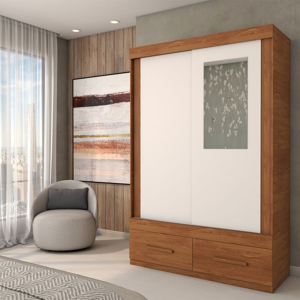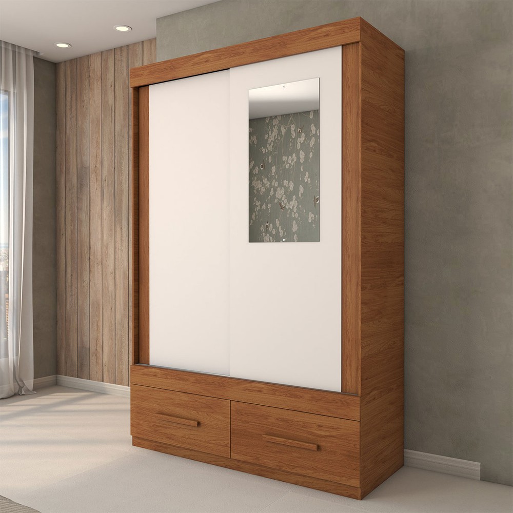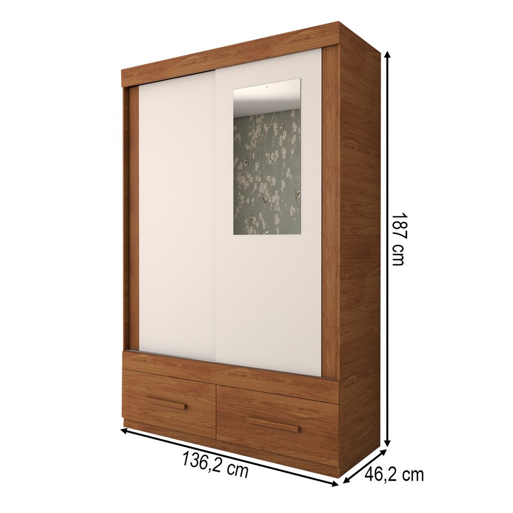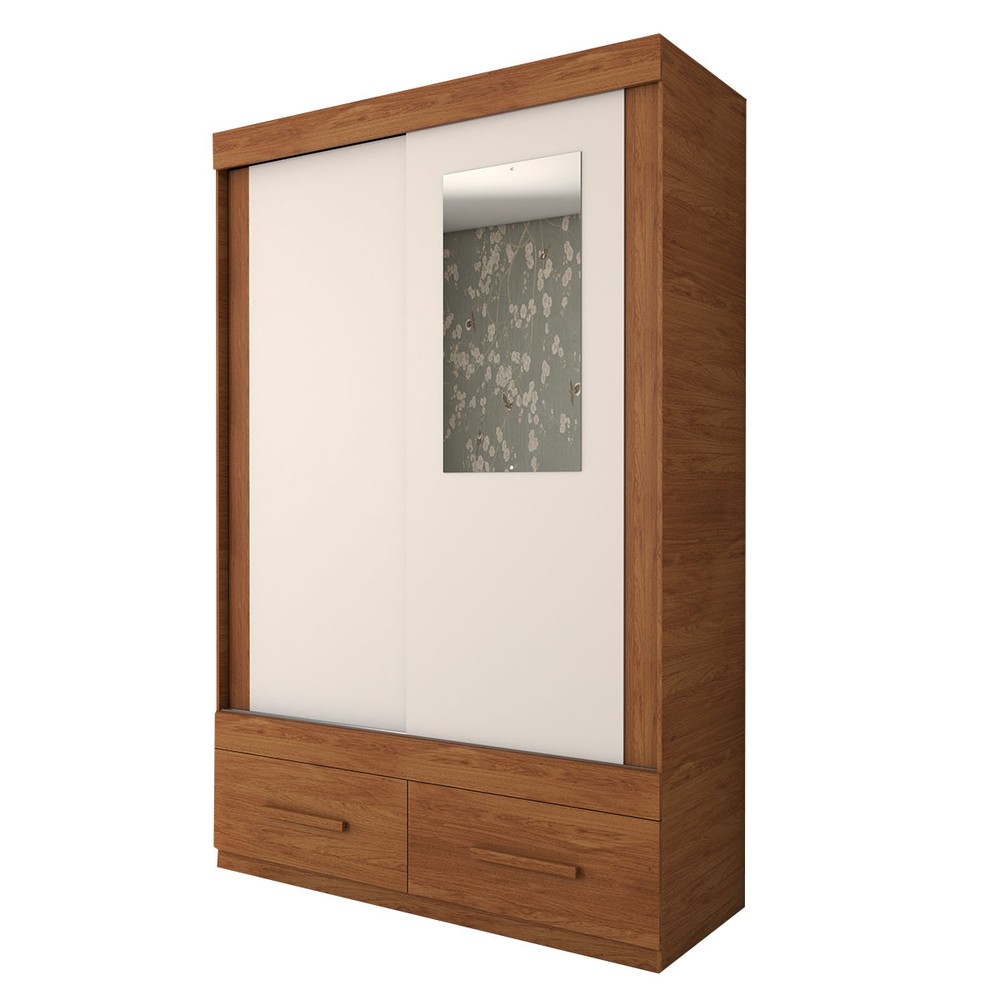 Guarda-Roupa Solteiro Trevor 2 Portas 2 Gavetas com Espelho Freijo/Off White - Panorama Móveis