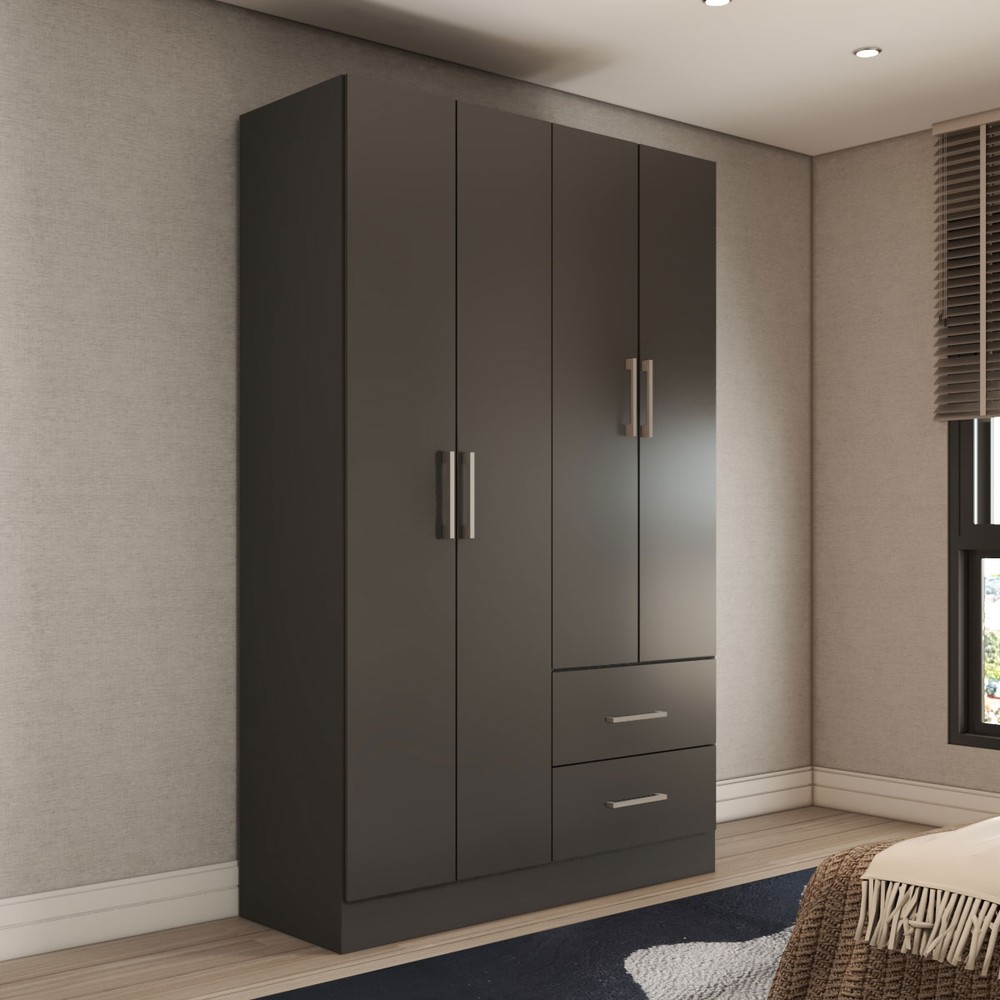 O(a) Guarda-Roupa Solteiro Vittorio 4 Portas 2 Gavetas Preto - Panorama Móveis é produzido em MDP na escala de brilho Brilho e Semi-Brilho, e possui um grau de dificuldade de montagem: Médio.