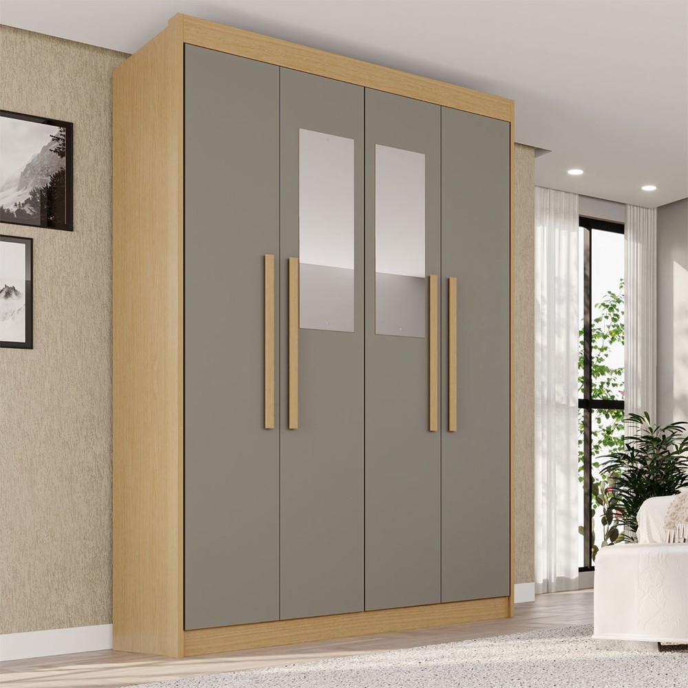 O(a) Guarda-Roupa Solteiro Weather com Espelho 4 Portas 3 Gavetas 100% Mdf Jequitibá/Granizo - Pnr Móveis é produzido em MDF na escala de brilho Semi-Fosco, e possui um grau de dificuldade de montagem: Médio.