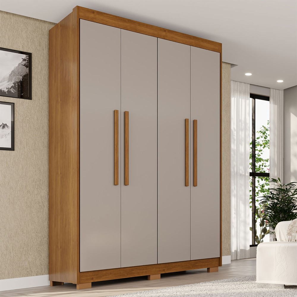 O(a) Guarda-Roupa Solteiro Weather com Pés 4 Portas 3 Gavetas 100% Mdf Cinamomo/Off White - Pnr Móveis é produzido em MDF na escala de brilho Semi-Fosco, e possui um grau de dificuldade de montagem: Médio.
