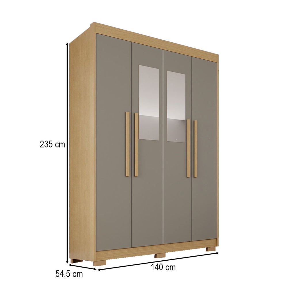 O(a) Guarda-Roupa Solteiro Weather com Pés e Espelho 4 Portas 3 Gavetas 100% Mdf Jequitibá/Granizo - Pnr Móveis é produzido em MDF na escala de brilho Semi-Fosco, e possui um grau de dificuldade de montagem: Médio.