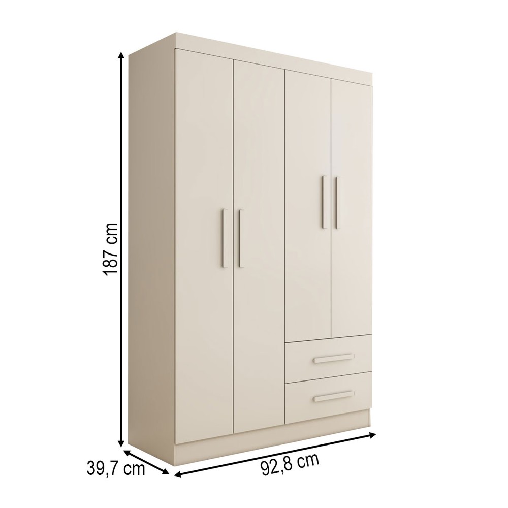 Guarda-Roupa Solteiro Zeus 4 Portas 2 Gavetas Flex Branco - Panorama Móveis