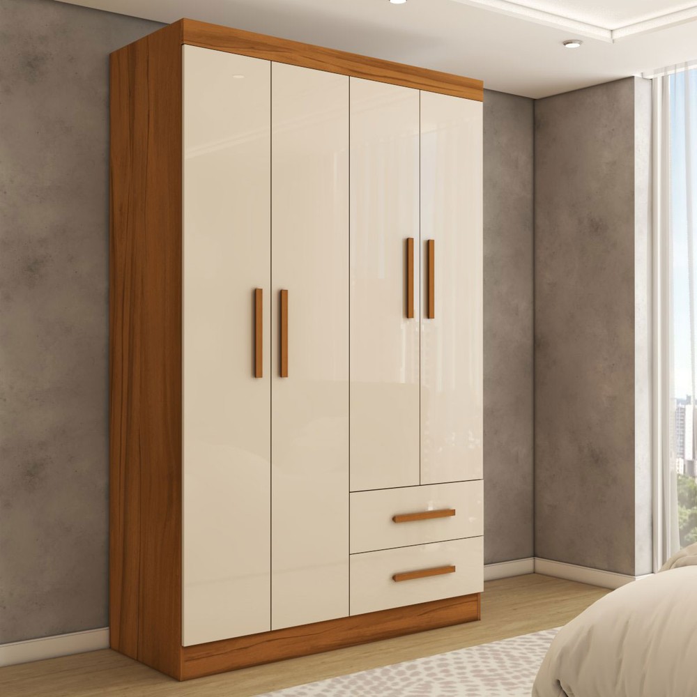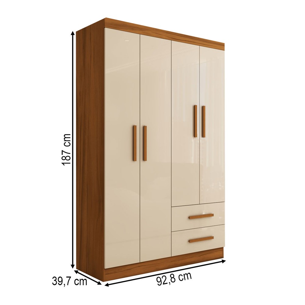 Guarda-Roupa Solteiro Zeus 4 Portas 2 Gavetas Freijó Trend/Off White Tx - Panorama Móveis