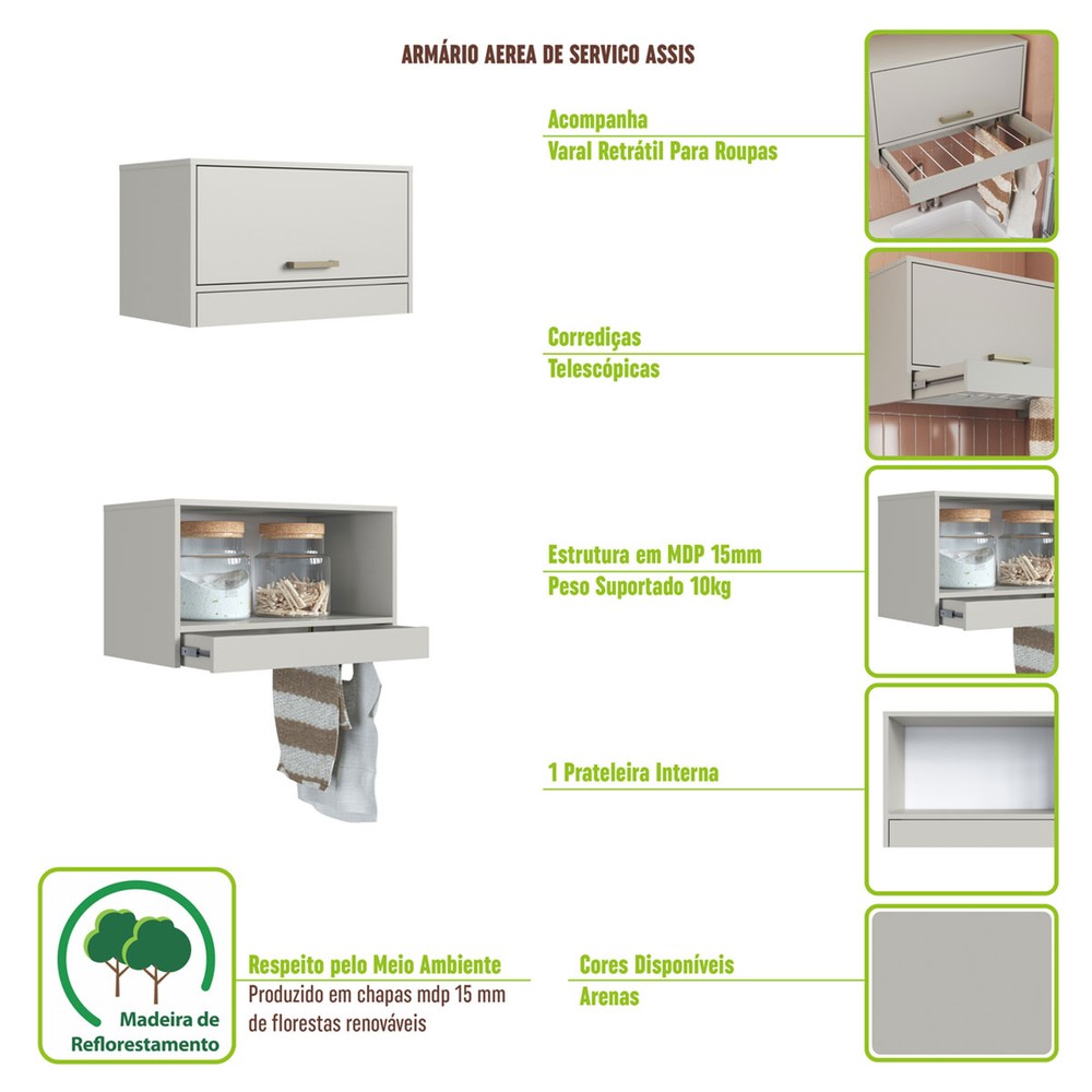 Acompanha Lavanderia Completa + Kit Ferragens + Manual de Montagem