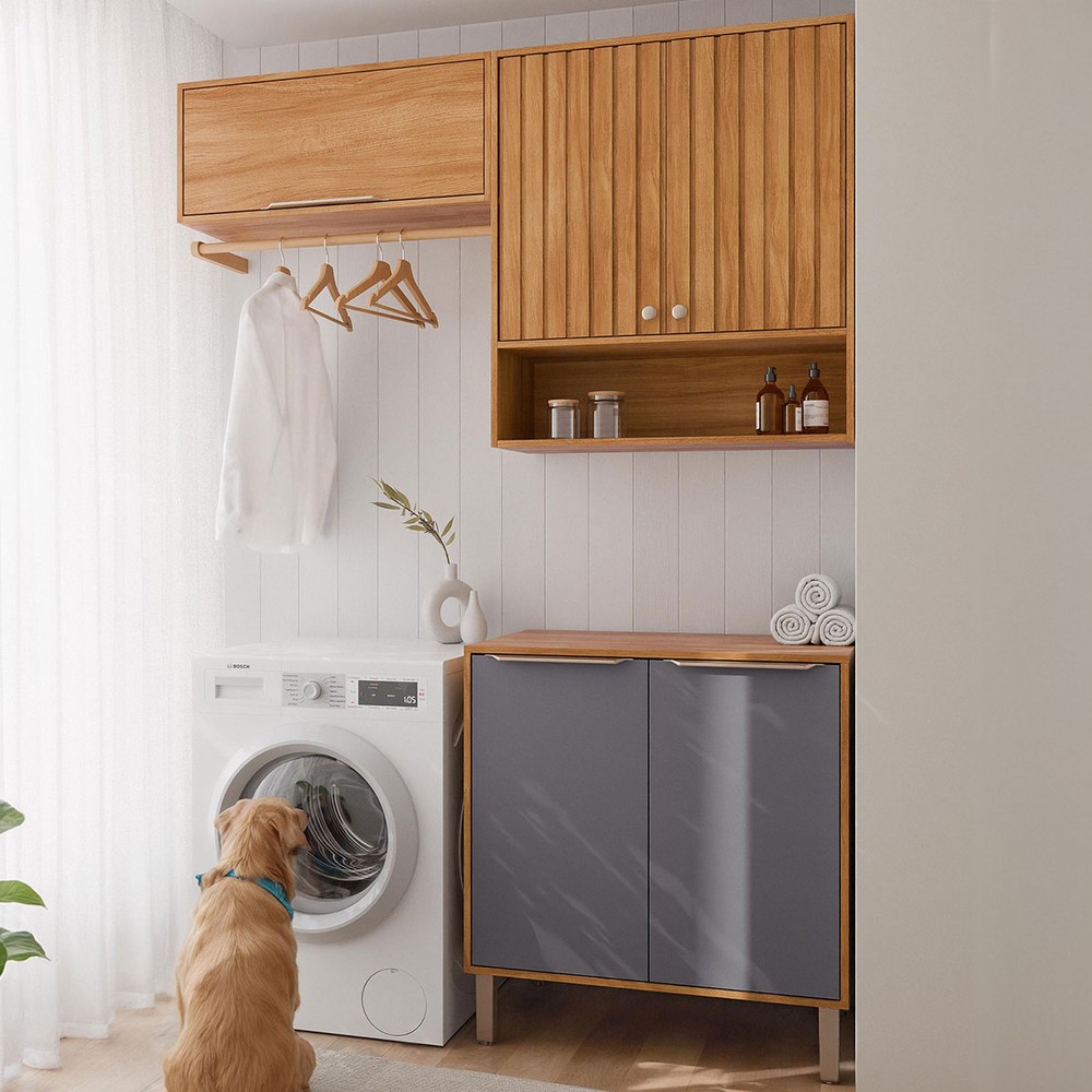 Lavanderia Completa Helena 5 Portas Ripado Cinamomo/Titanium - Pnr Moveis