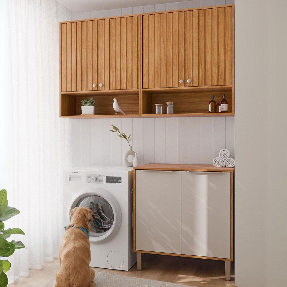 Lavanderia Completa Helena 6 Portas Ripado Cinamomo/Off White - Pnr Móveis