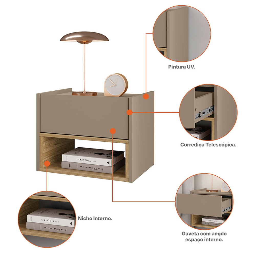 Mesa de Cabeceira Autentic 1 Gaveta Fendi/Hannover - Pnr Móveis