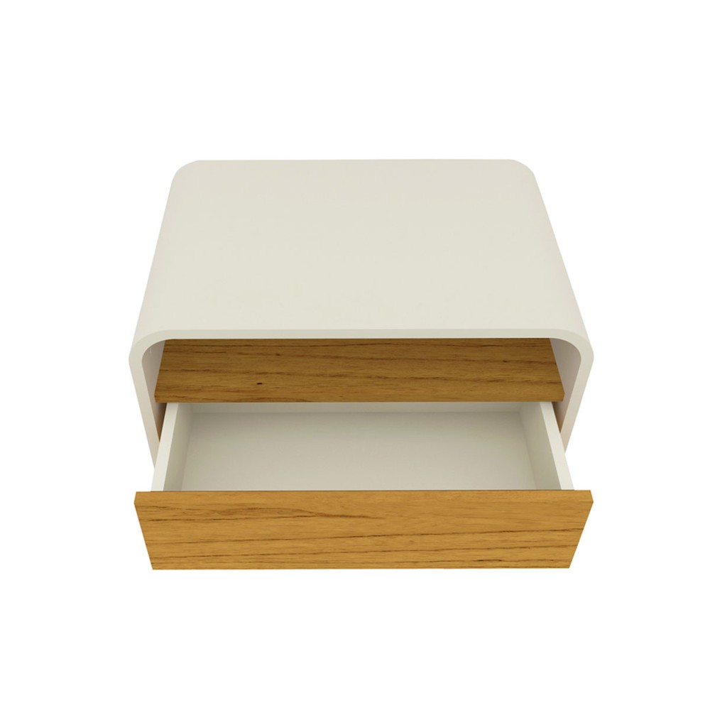 O(a) Mesa de Cabeceira Innova 1 Gaveta 100% Mdf Off White/Naturale - Gelius é produzido em 100% MDF na escala de brilho Brilhante, e possui um grau de dificuldade de montagem: Médio.