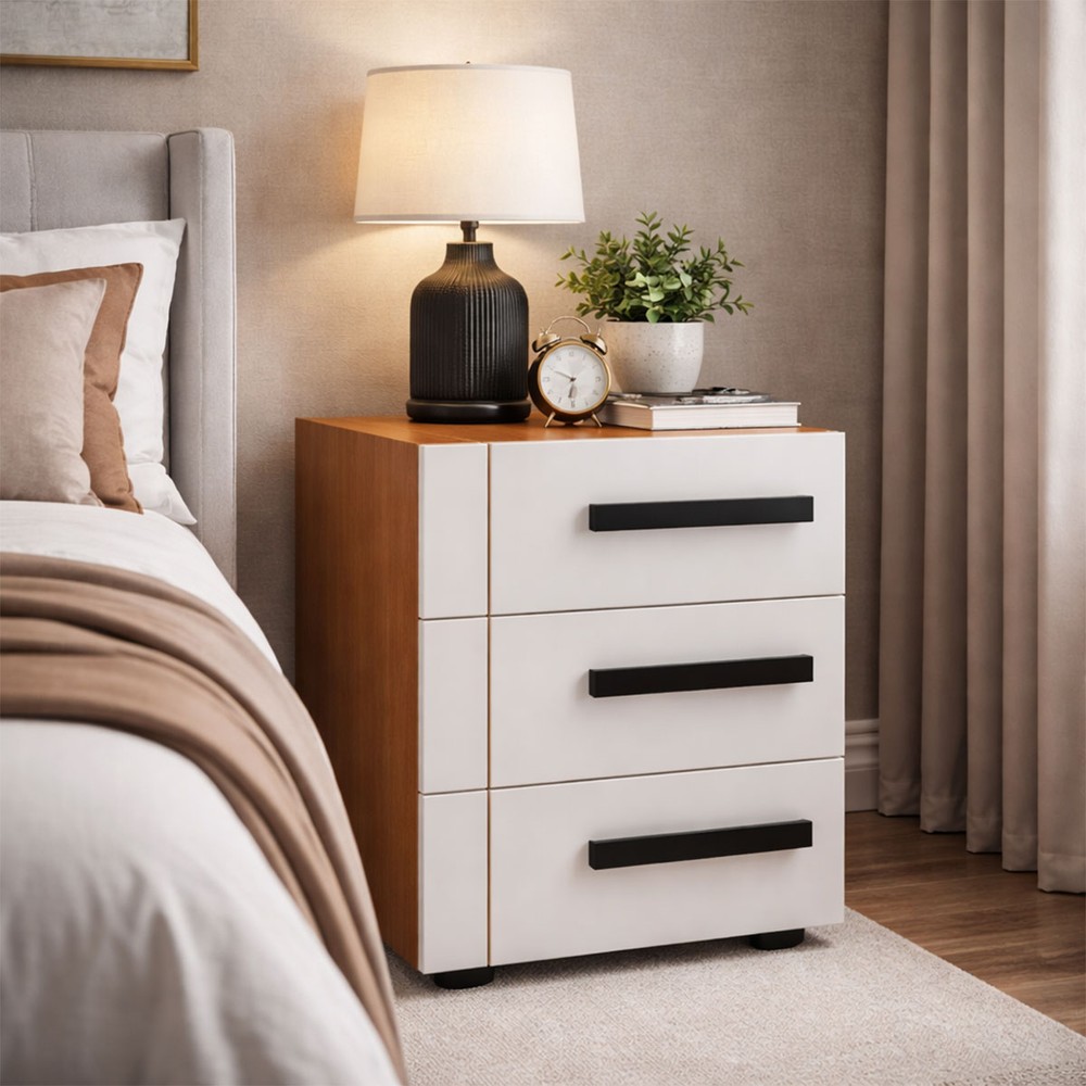 Mesa de Cabeceira Lisboa 3 Gavetas Branco/Freijó - Politorno
