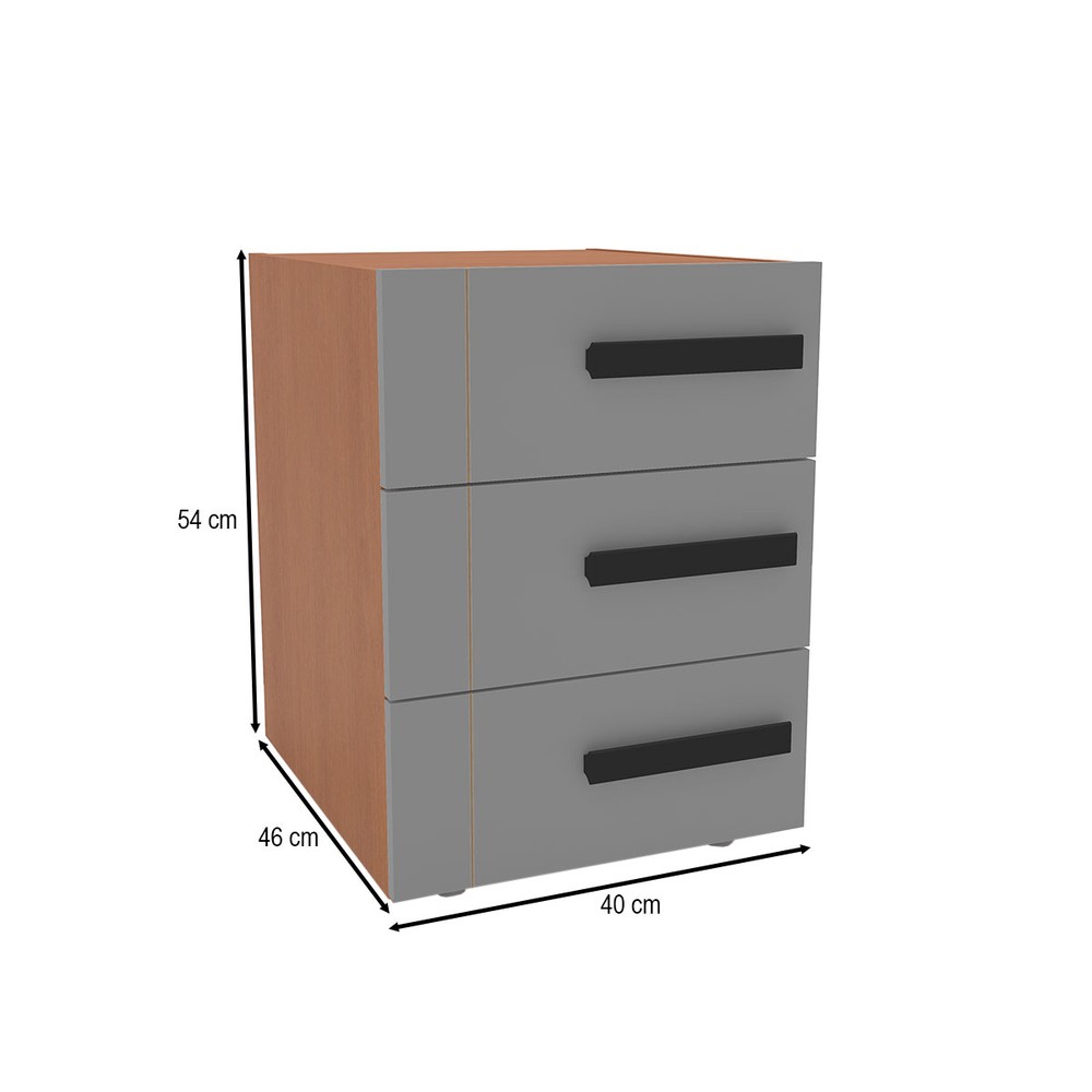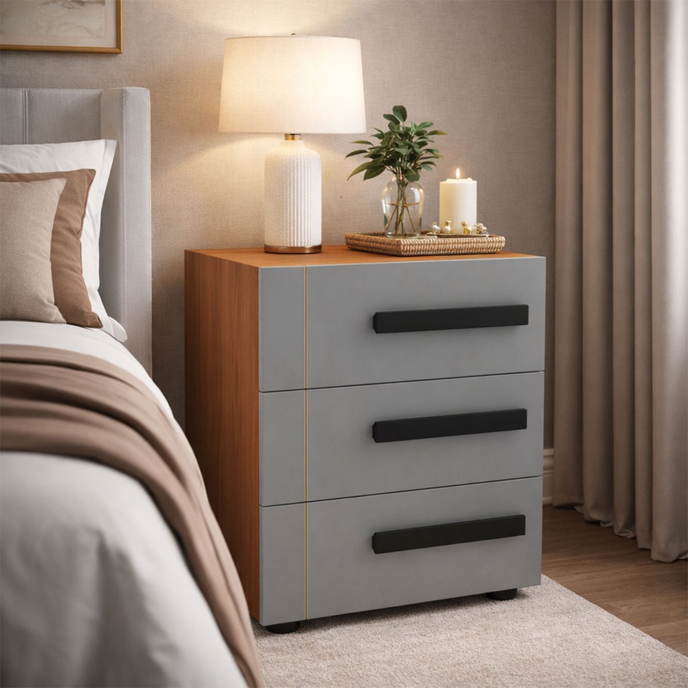 Mesa de Cabeceira Lisboa 3 Gavetas Cinza/Freijó - Politorno