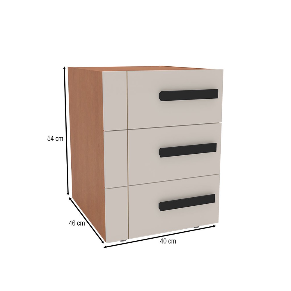 O(a) Mesa de Cabeceira Lisboa 3 Gavetas Creme/Freijó - Politorno é produzido em MDP na escala de brilho Semi-Fosco, e possui um grau de dificuldade de montagem: Médio.