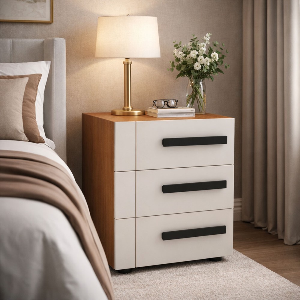 Mesa de Cabeceira Lisboa 3 Gavetas Creme/Freijó - Politorno