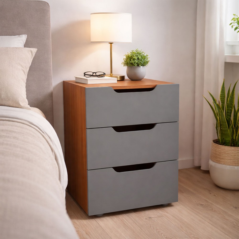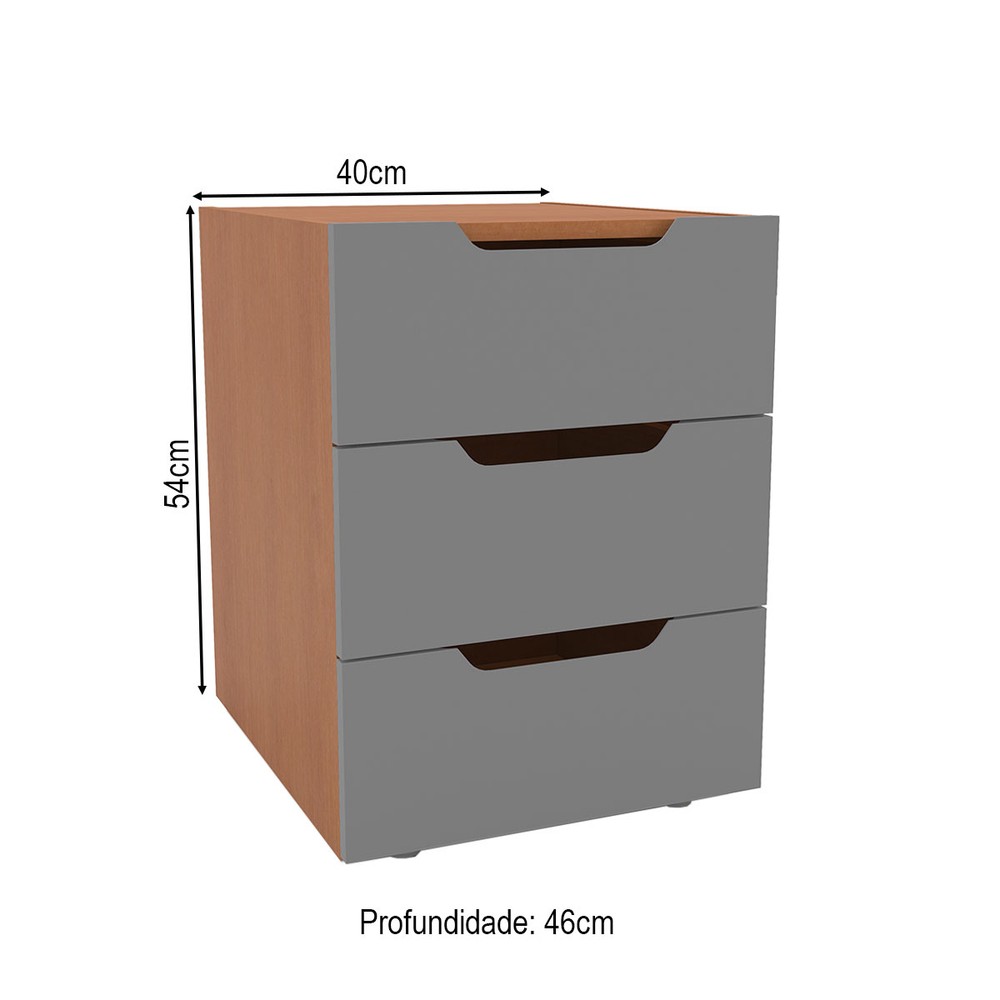 Mesa de Cabeceira Madri 3 Gavetas Cinza/Freijó - Politorno