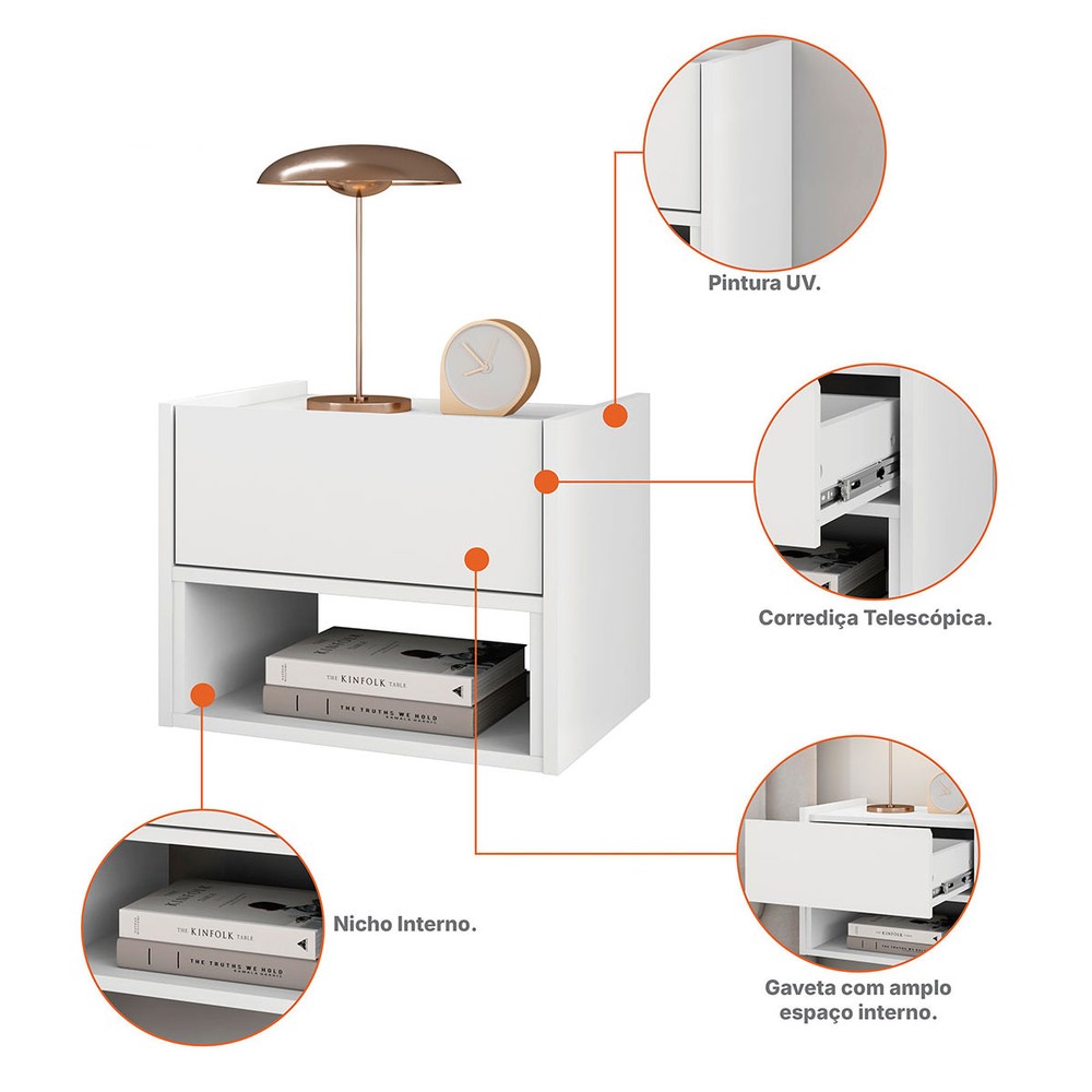 O(a) Mesa de Cabeceira Pierre 1 Gaveta Branco - Pnr Móveis é produzido em MDF e MDP na escala de brilho Semi-Fosco, e possui um grau de dificuldade de montagem: Médio.
