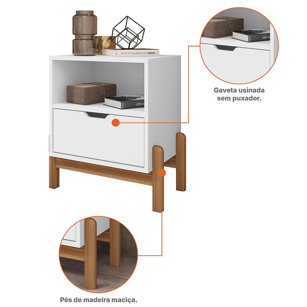 O(a) Mesa de Cabeceira Pomerode 1 Gaveta Branco - Pnr Móveis é produzido em MDP/MDF na escala de brilho Semi-Fosco, e possui um grau de dificuldade de montagem: Médio.