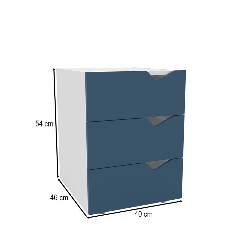 Mesa de Cabeceira Porto 3 Gavetas Azul/Branco - Politorno