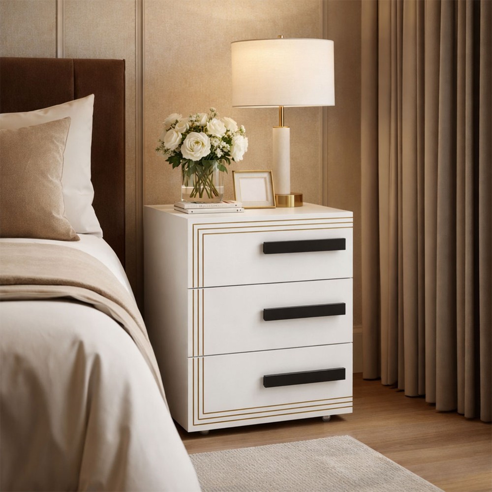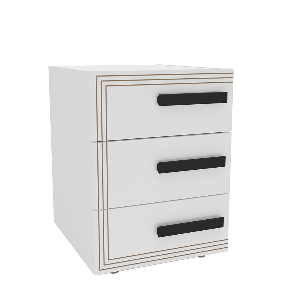 Mesa de Cabeceira Valência 3 Gavetas Branco - Politorno