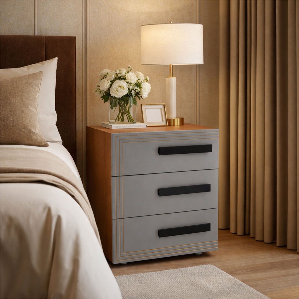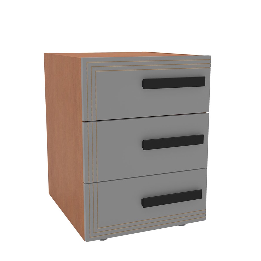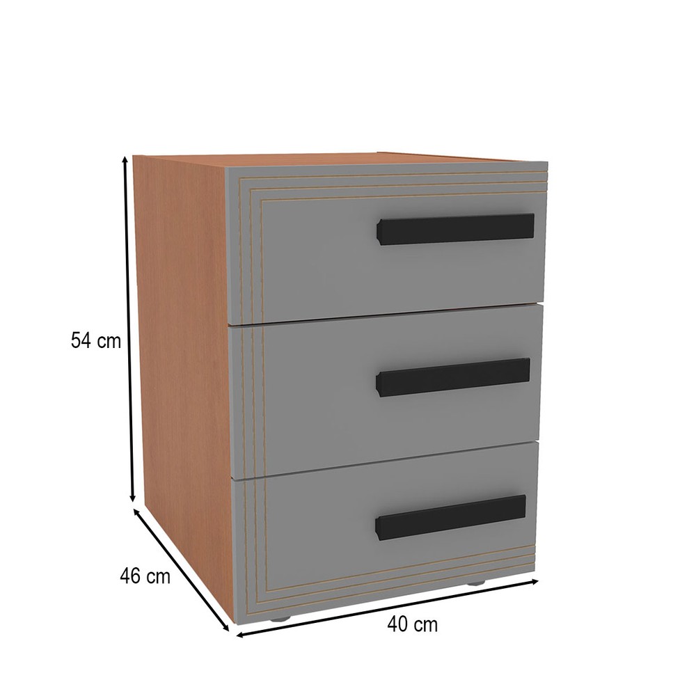 Mesa de Cabeceira Valência 3 Gavetas Cinza/Freijó - Politorno