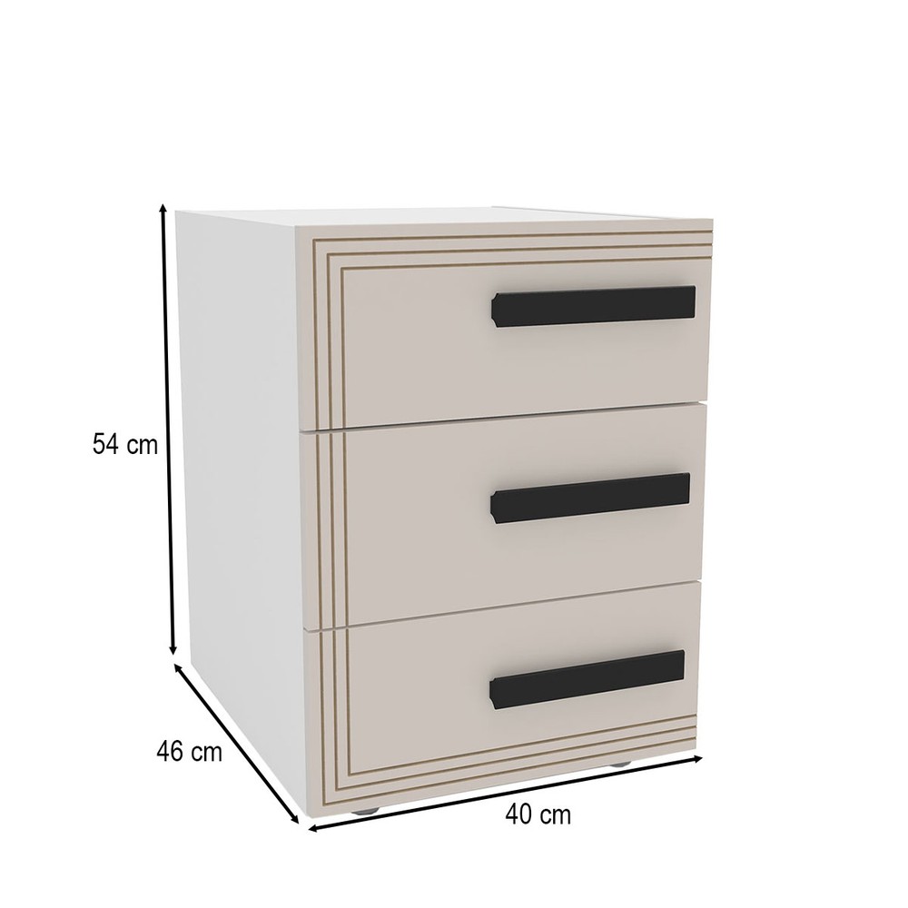 Mesa de Cabeceira Valência 3 Gavetas Creme/Branco - Politorno