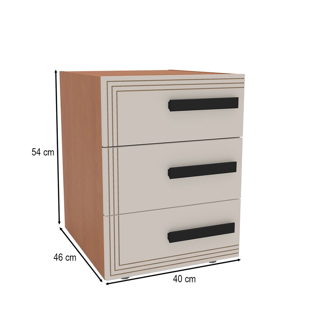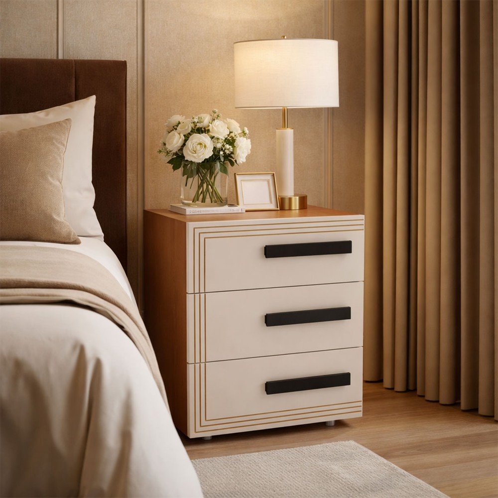 Mesa de Cabeceira Valência 3 Gavetas Creme/Freijó - Politorno