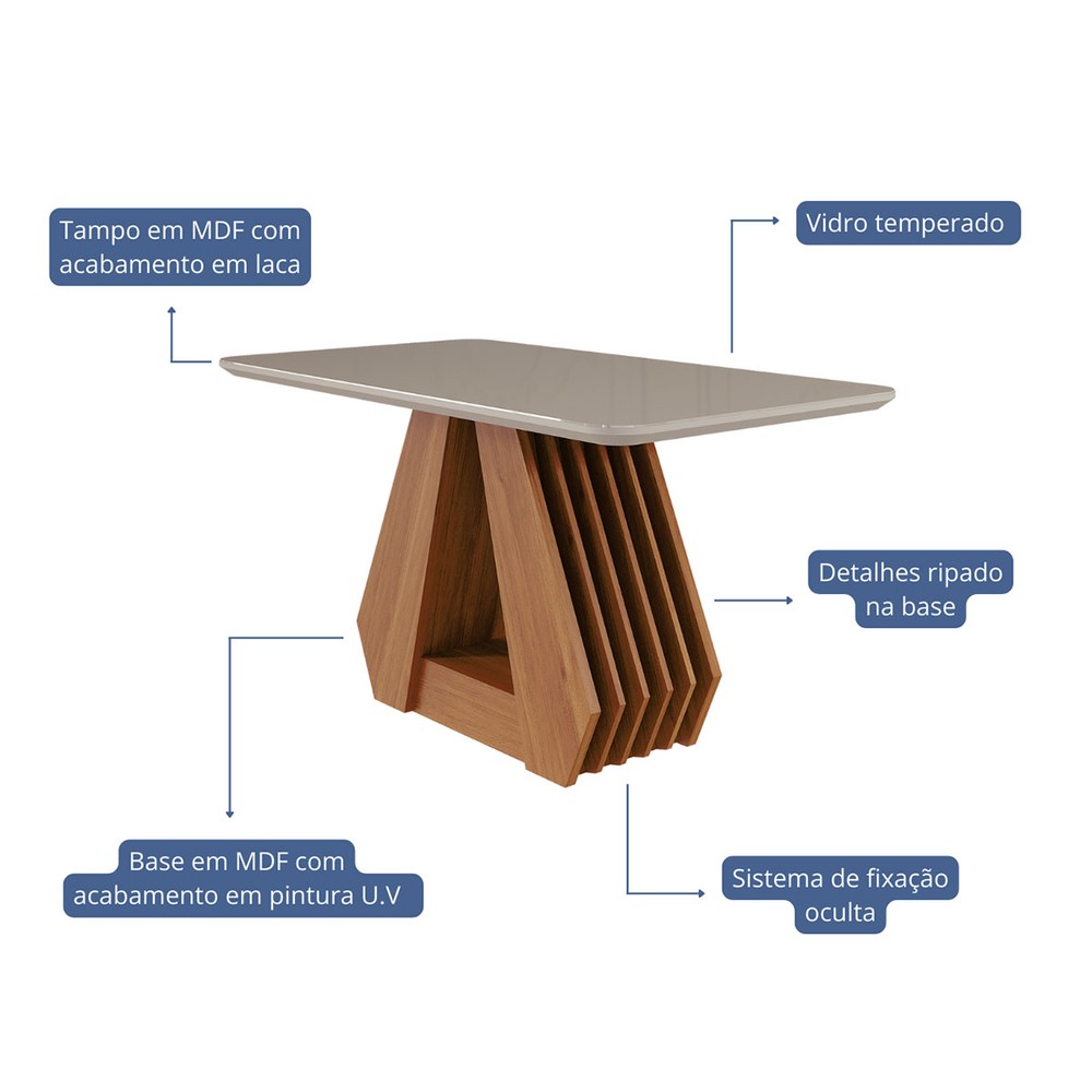 O(a) Mesa de Jantar 4 Lugares ágata Clarice com Vidro Cinamomo/Off White/Nude - Cimol é produzido em MDF na escala de brilho Semi-Brilho, e possui um grau de dificuldade de montagem: Médio.