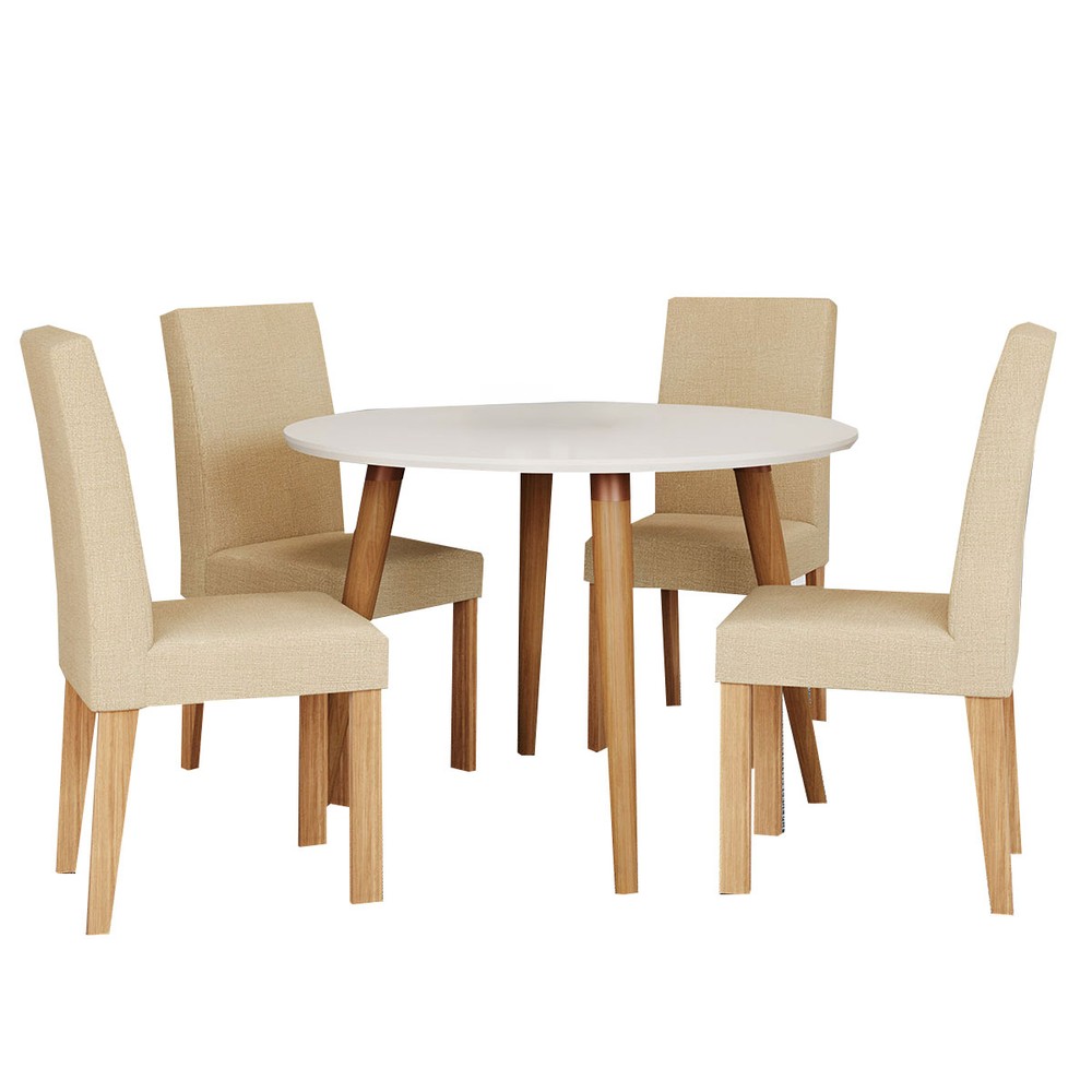 O(a) Mesa de Jantar 4 Lugares Dani Maia Madeira/Off White/Gengibre - Cimol é produzido em MDF na escala de brilho Semi-Brilho, e possui um grau de dificuldade de montagem: Médio.