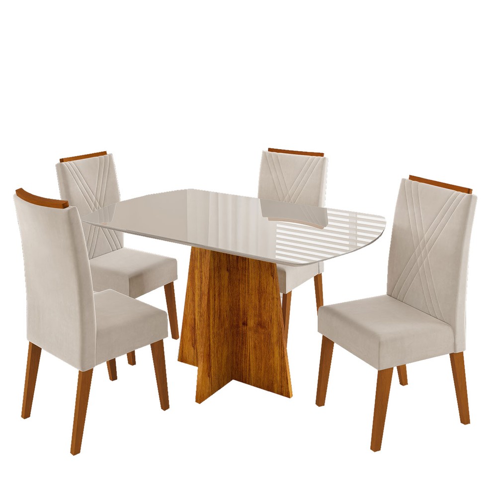 Mesa de Jantar 4 Lugares Lunara com Vidro Mel/Off White/Pastel - Viero Móveis