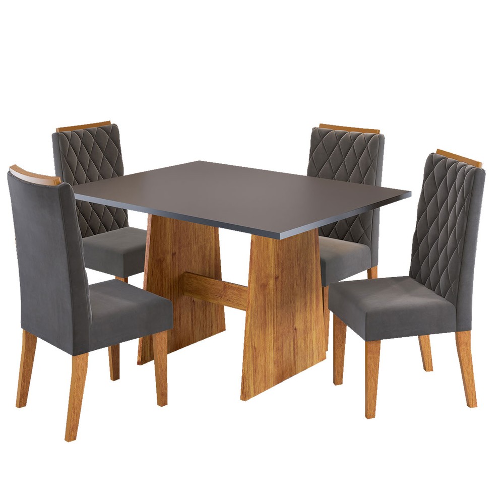 O(a) Mesa de Jantar 4 Lugares Xandria Mel/Cinza - Viero Móveis é produzido em MDF e MDP na escala de brilho Semi-Brilho, e possui um grau de dificuldade de montagem: Médio.