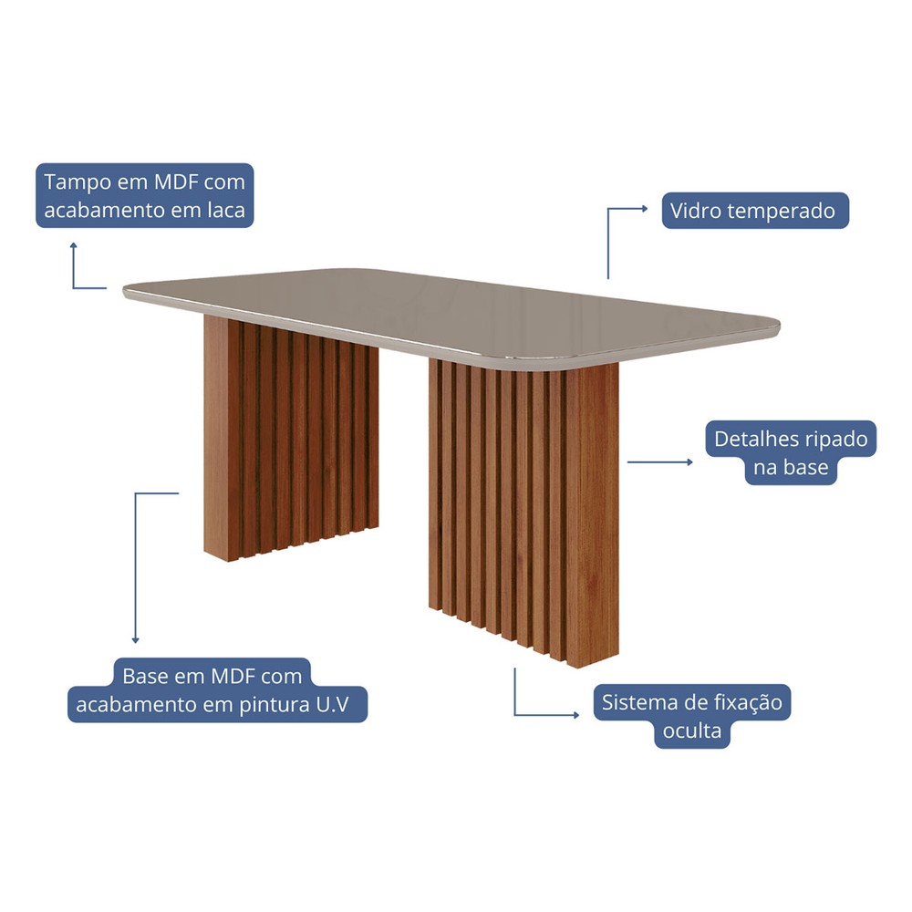 Mesa de Jantar 6 Lugares Ester Clarice com Vidro Ripado Cinamomo/Off White/Grafite - Cimol