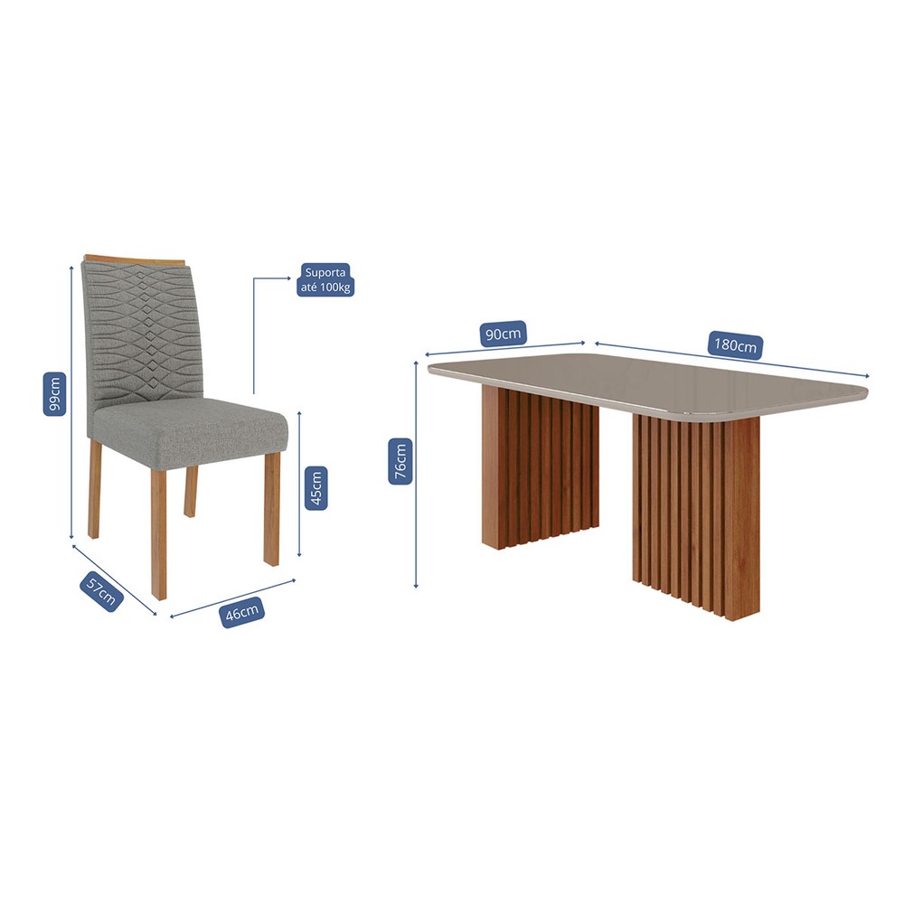 O(a) Mesa de Jantar 6 Lugares Ester Clarice com Vidro Ripado Cinamomo/Off White/Grafite - Cimol é produzido em MDF na escala de brilho Semi-Brilho, e possui um grau de dificuldade de montagem: Médio.