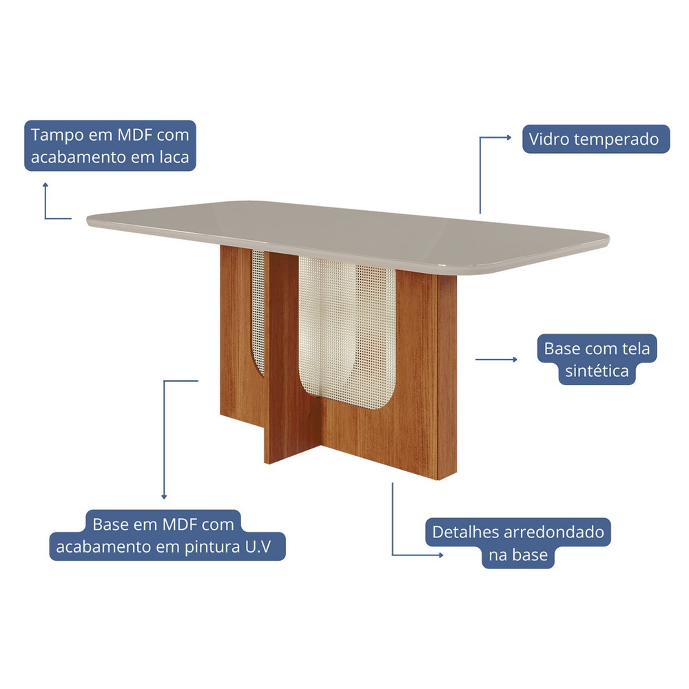 O(a) Mesa de Jantar 6 Lugares Louise Clarice com Vidro Cinamomo/Off White/Nude - Cimol é produzido em MDF na escala de brilho Semi-Brilho, e possui um grau de dificuldade de montagem: Médio.