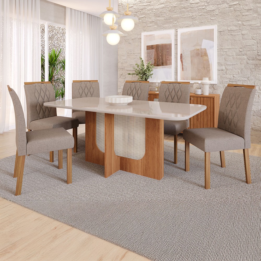 Mesa de Jantar 6 Lugares Louise Juliana com Vidro Cinamomo/Off White/Bege - Cimol