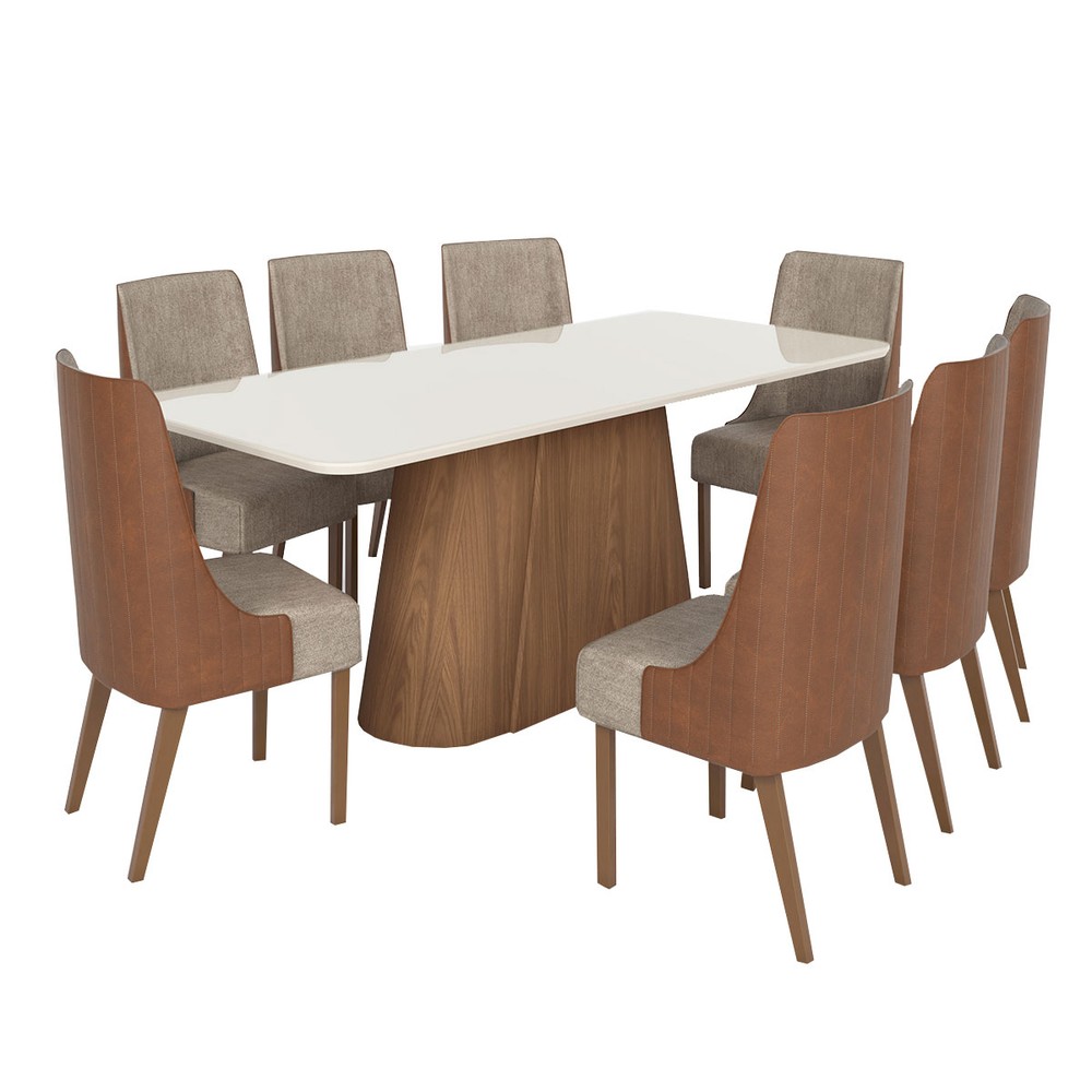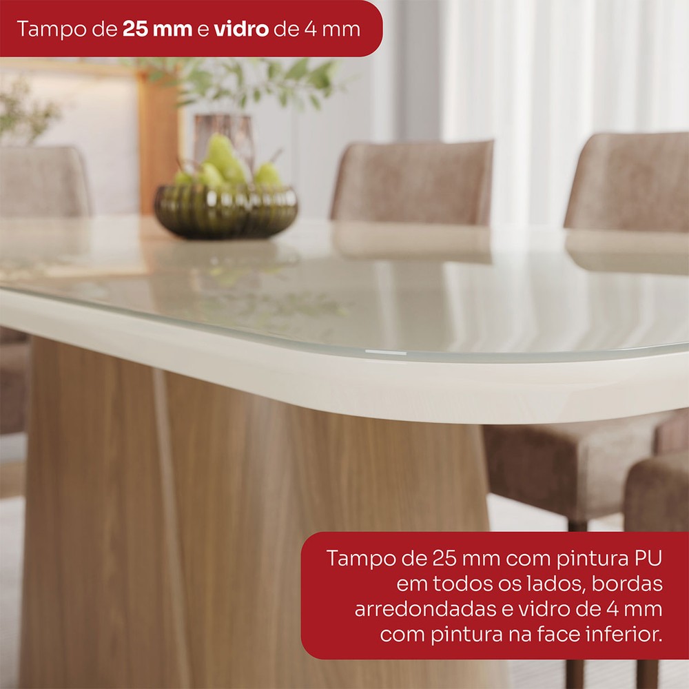 Mesa de Jantar 8 Lugares Olivía com Vidro Nature/Off White/Corano/Caramelo/Creme - Henn