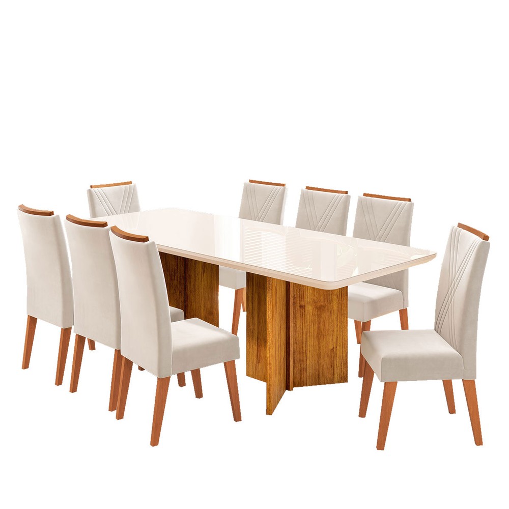 Mesa de Jantar 8 Lugares Princeton com Vidro Mel/Off White/Pastel - Viero Móveis