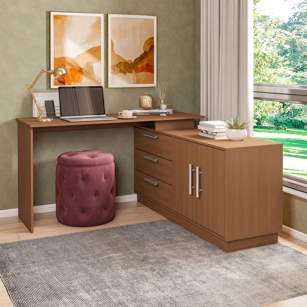 O(a) Mesa Escrivaninha com Cõmoda Rocher 2 Portas 3 Gavetas Freijó - Pnr Móveis é produzido em MDP na escala de brilho Fosca com Textura, e possui um grau de dificuldade de montagem: Médio.