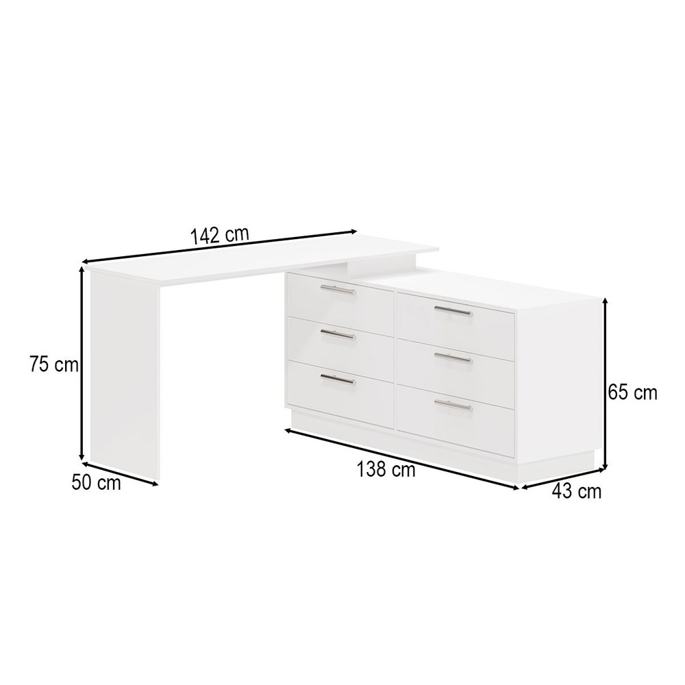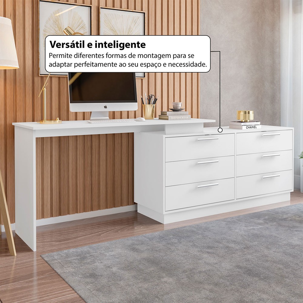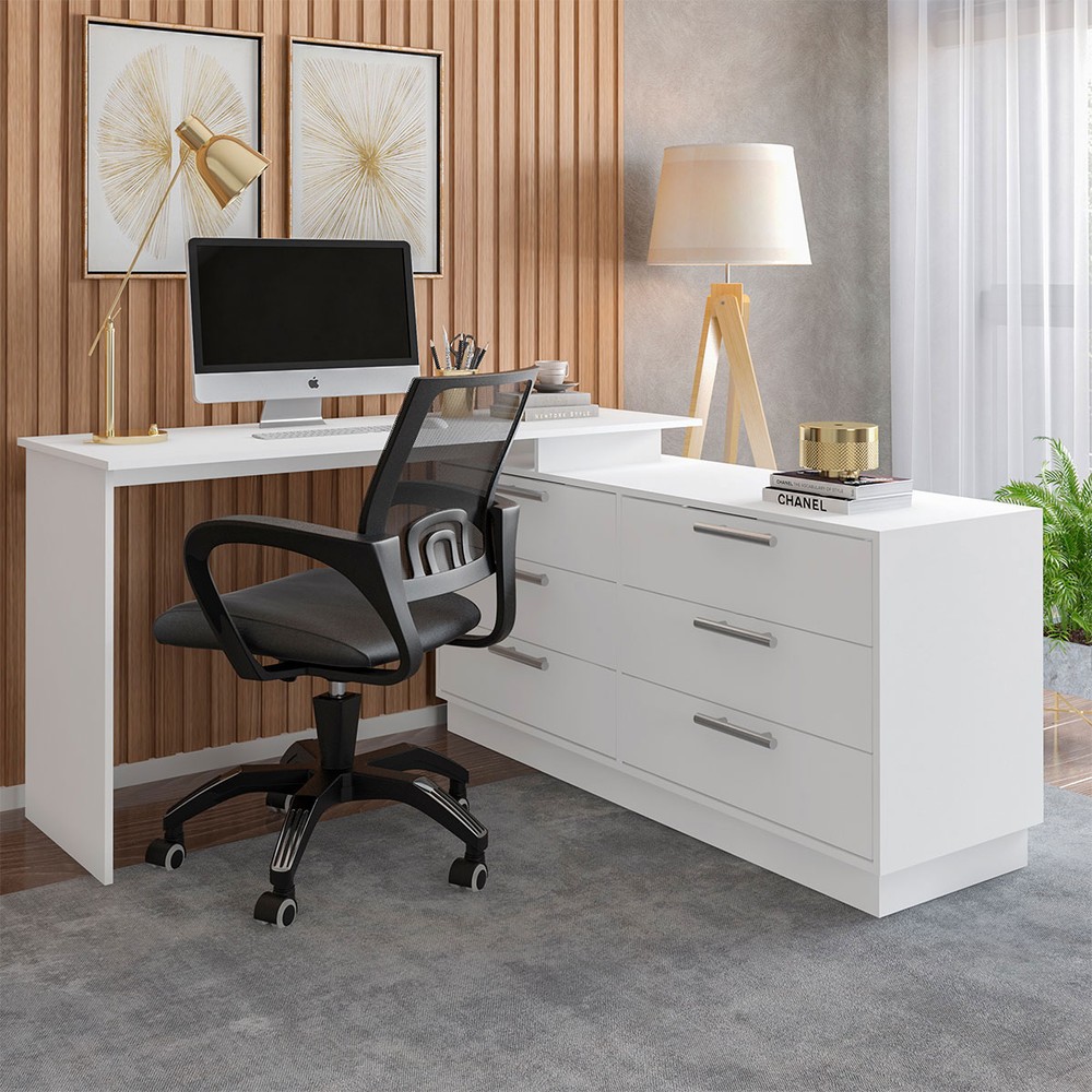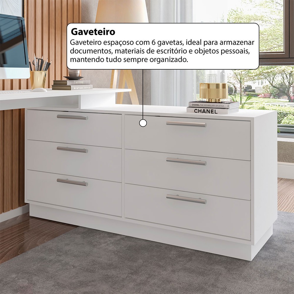 O(a) Mesa Escrivaninha com Cômoda Rocher 6 Gavetas Branco - Pnr Móveis é produzido em MDP na escala de brilho Fosca com Textura, e possui um grau de dificuldade de montagem: Médio.