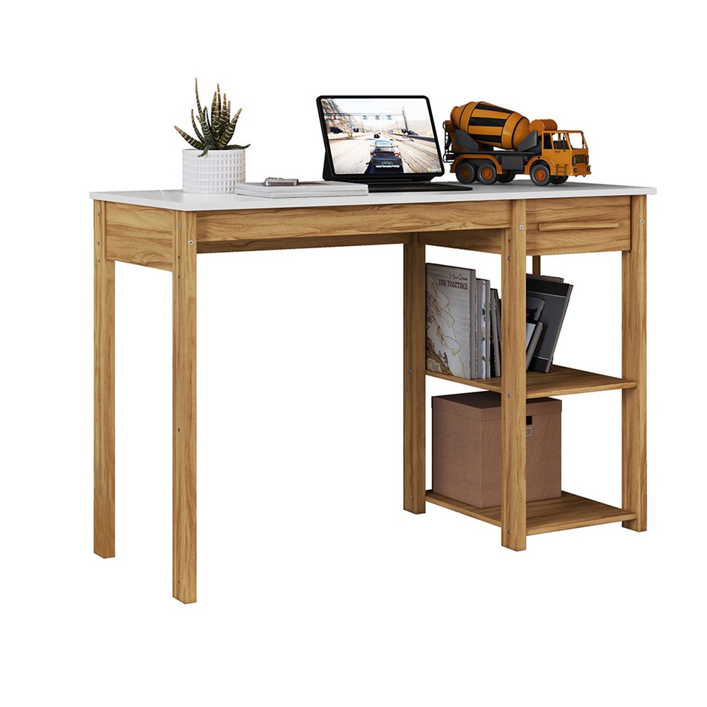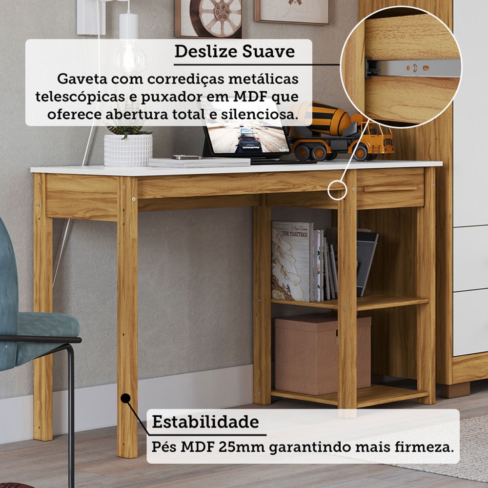 O(a) Mesa Infantil 1 Gaveta 2 Prateleiras 100% Mdf 7994 Branco Brilho/Amêndoa - Móveis Peroba é produzido em 100% MDF na escala de brilho Semi-Brilho, e possui um grau de dificuldade de montagem: Médio.